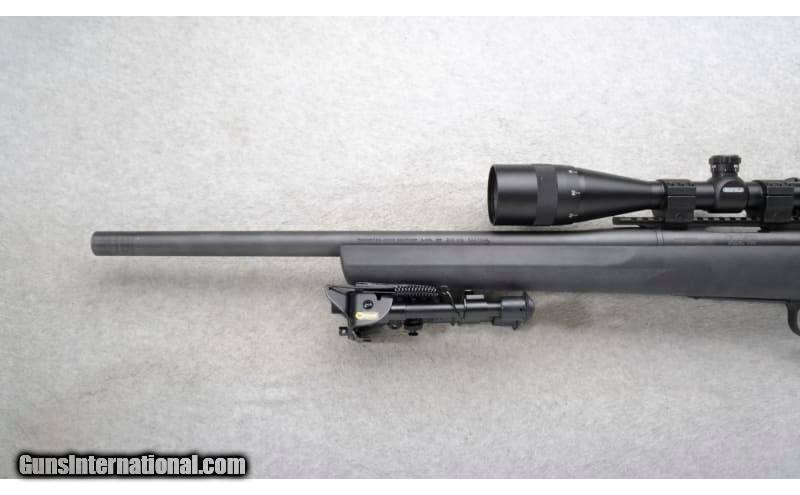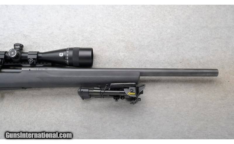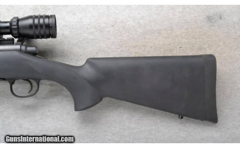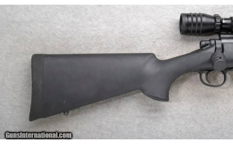 Description: This Remington Model 700 tactical is a right hand bolt action rifle in .308 Win. Cal. It has a 20 inch heavy matte black barrel. It is outfitted with a Redfield Battle Zone 6x18 Scope. No iron sights. The butt stock is a textured grip black rubber coated pistol grip. The forearm is a textured grip black rubber coated with finger grooves and a folding adjustable Bi-Pod. It has an oversize bolt handle. .308 Winchester SOLD Chambers: Internal magazine with a hinged floorplate. Metal Condition: Very Good. Some minor handling/use marks. Bore Condition: Excellent. Barrels: 20 inch heavy barrel. Stock Dimensions: LOP 13 3/4 inches. Fore End: Textured grip black rubber coated with finger grooves. Caldwell folding adjustable Bi-Pod. Butt Pad: Hogue black rubber recoil pad. Weight: 10 lb. 9 oz. Sights: Redfield Battle Zone TAC-MOA 6x18 Scope. No iron sights. Item Location: Richfield, WI |