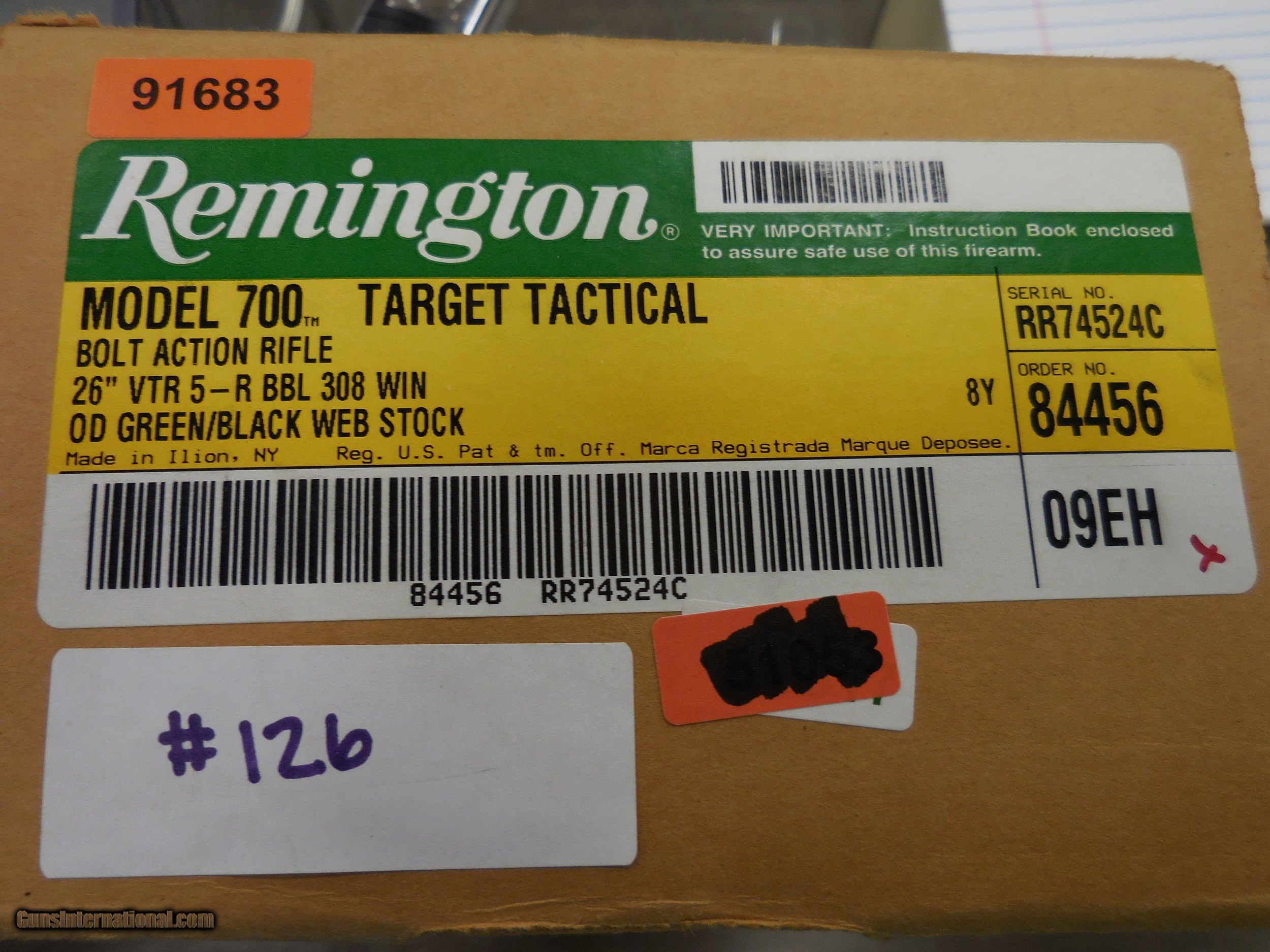 Description: HAVE A REMINGTON MODEL 700 TARGET TACTICAL 308 26" VTR 5 BARREL CUSTOM BLACK FINISH OVER ORIG GREEN SKU 84456 ALL LIKE NEW IN ORIG BOXES [ HAVE 2 TO SELL IDENTICAL ] CALL TO ORDER AT 401 738 1889 SOLD |