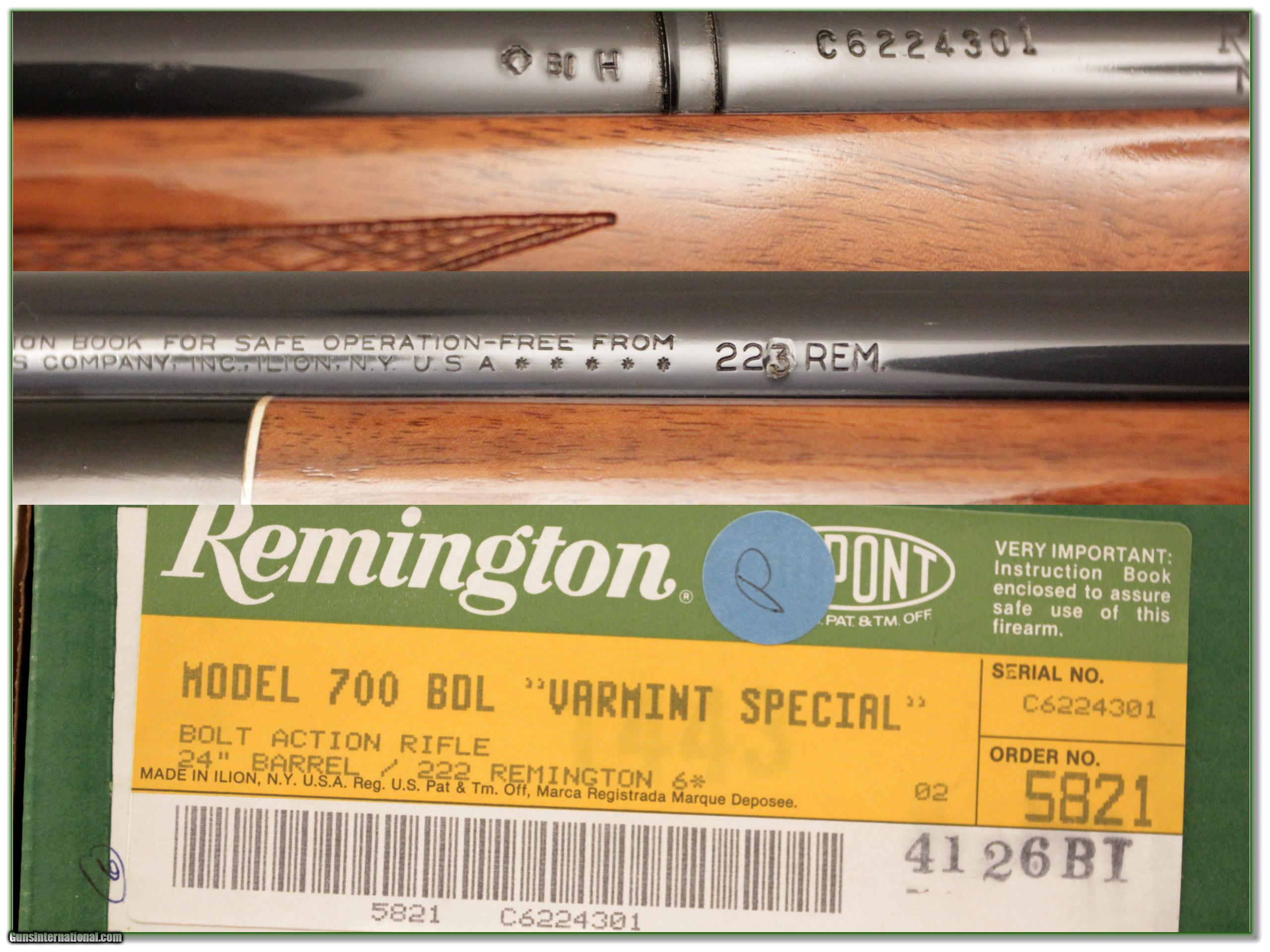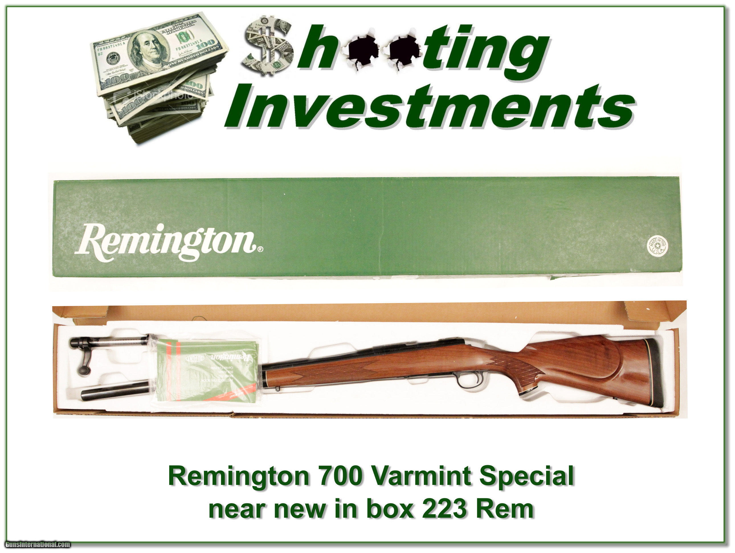 Description: Shooters and varmint hunters, this is a near new condition Remington 700 BDL Varmint Special. It comes in original box with hangtag and manual. Note this is a 223 rechambered from 222. Shipping and insurance is $35. Please email me with any questions or larger pictures. (I now consign quality firearms only 10%! Let me know if you have any you would like to sell!) [16-0294] Payment: Payment is by Money Order, Cashiers Check or Personal Check. I can now also accept MasterCard and Visa with a 3% convenience fee. PayPal can be used for some items but never firearms. Please let us know if you would like to pay via PayPal. Shipping: The shipping charge will be listed in each description. It is $35 for most guns. Some heavy guns or those insured for over $2000 will be higher. Shipments to Alaska and Hawaii are higher because air shipment is required. Most firearms are shipped within 5 days of receipt of payment. We prefer shipping at the beginning of the week to avoid firearms in transit over weekends. We package all shipments carefully and insure them for the full purchase price, rounded up to the next $100. In the unlikely event that damage occurs, it is important that you save all packaging material for the claims process. Optics are shipped Priority Mail and most other non-firearm shipments are shipped First Class. Returns: Our return policy is simple. If for any reason you are not pleased with your purchase, you may return your item for a refund. The only exception is ammunition, it cannot be returned. It is important to us that you are happy. Guns cannot be fired or dissembled before returning them and must be returned in the same condition as received. Notification of a return must occur with-in 3 days of receipt at your dealer. Shipping, convenience and dealer fees are not refundable and are the responsibility of the buyer. Lay-a-way: If needed, we offer a 60 day lay-a-way option on most firearms. It is 1/3 now, 1/3 in 30 days and 1/3 in 60 days. Lay-a-way firearm sales are final. Consigning your firearms with Shooting Investments: We will help you get top dollar for your firearms. While most local guns shops charge 20% or more, our fee is only 10% with a minimum of $50. At your local gun shop it might take months to sell. Selling on-line provides instant access to thousands of interested buyers. You won’t find any other on-line dealer willing to sell your firearms for only 10% or listing every gun on 4 separate s. Selling through an House typically costs the seller 15% and the buyer an addition 15% (so 30%) and you have to wait several months to sell and longer to receive funds. If properly priced, we will sell your firearms in a week or two. Send us an email or give us a call and we’ll explain how easy it is for you to get top dollar. Trading: We collect guns and usually just trade for guns we want to add to our collections. We often sell guns for others wanting to purchase one of ours. We find this the most fair to both of us. Our Commission is only 10% and we hold the gun you want until yours sells. Please contact us if you want to sell one of yours to buy one of ours. Help for California Buyers: We are happy to ship to California. It is the buyer’s responsibility to make sure any item you buy is legal in your state. We are also happy to help with your purchase of a firearm from someone other than us. If you see a gun you would like to buy but the seller can’t or won’t ship to California we can help. You buy the gun and have it shipped to us. We’ll then ship it to your California dealer. The cost for this service is only $30 + shipping. Let me know if we can help! SOLD |