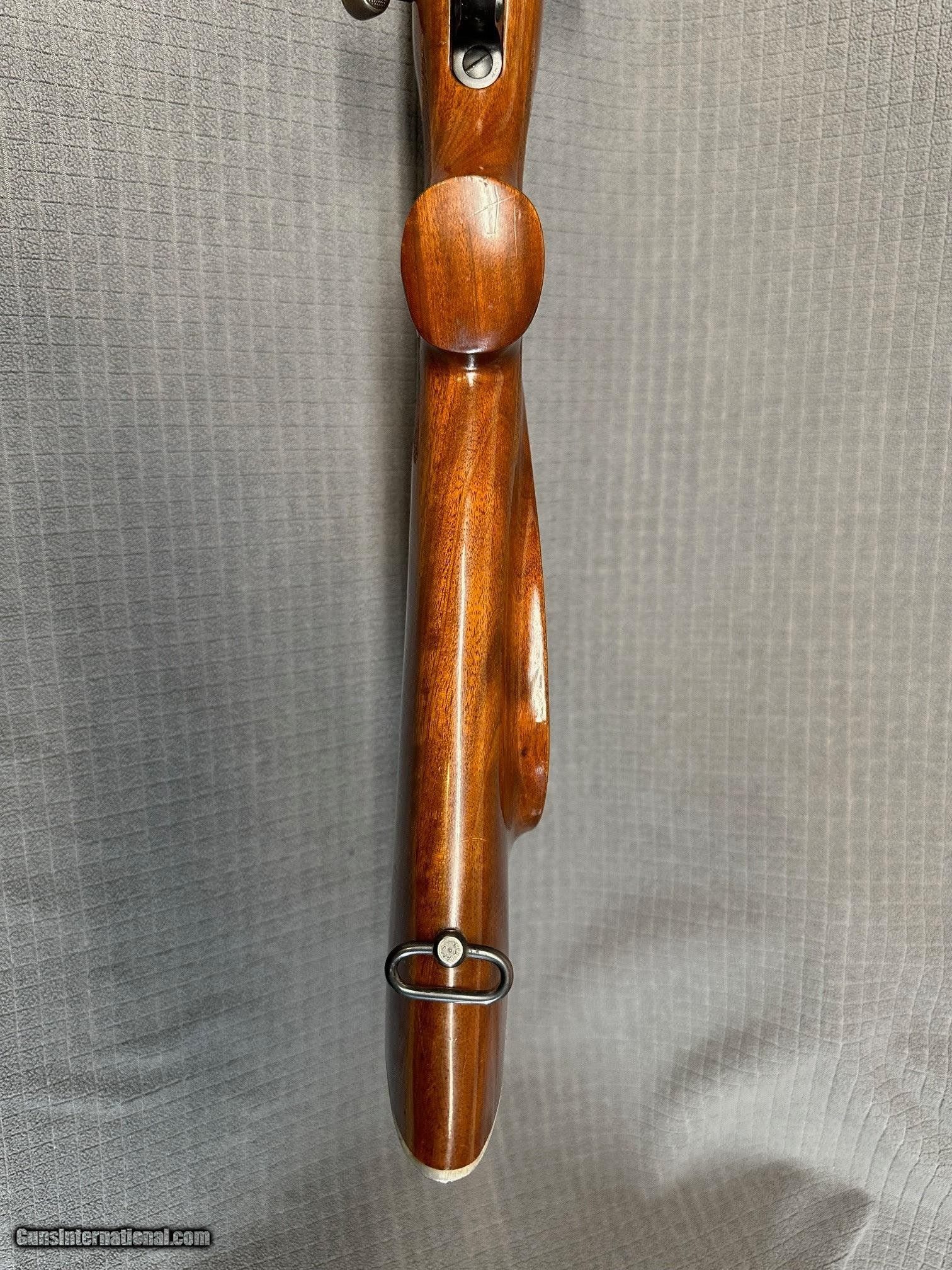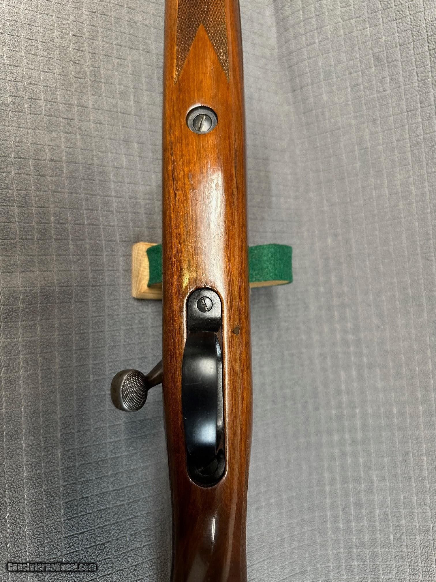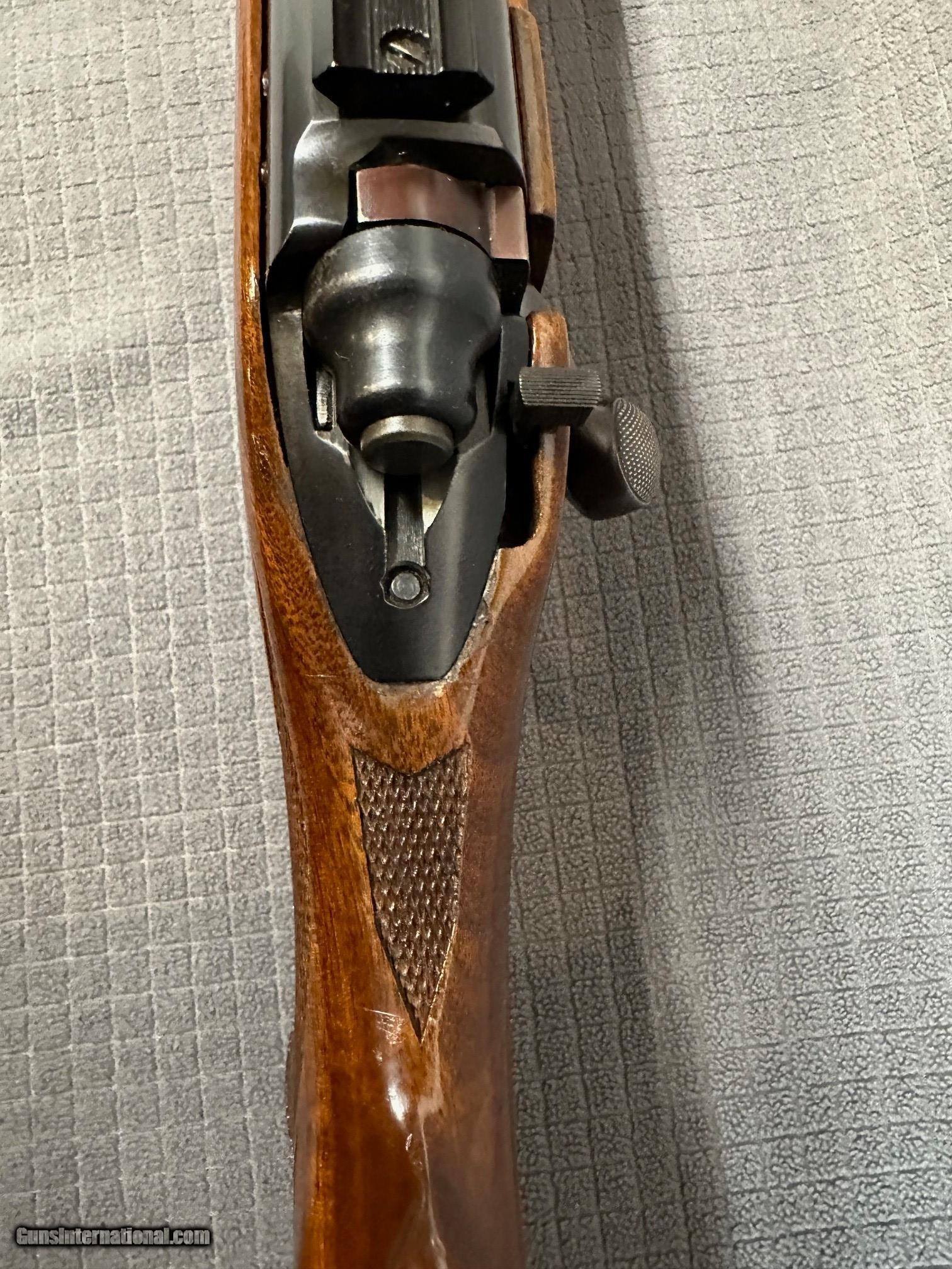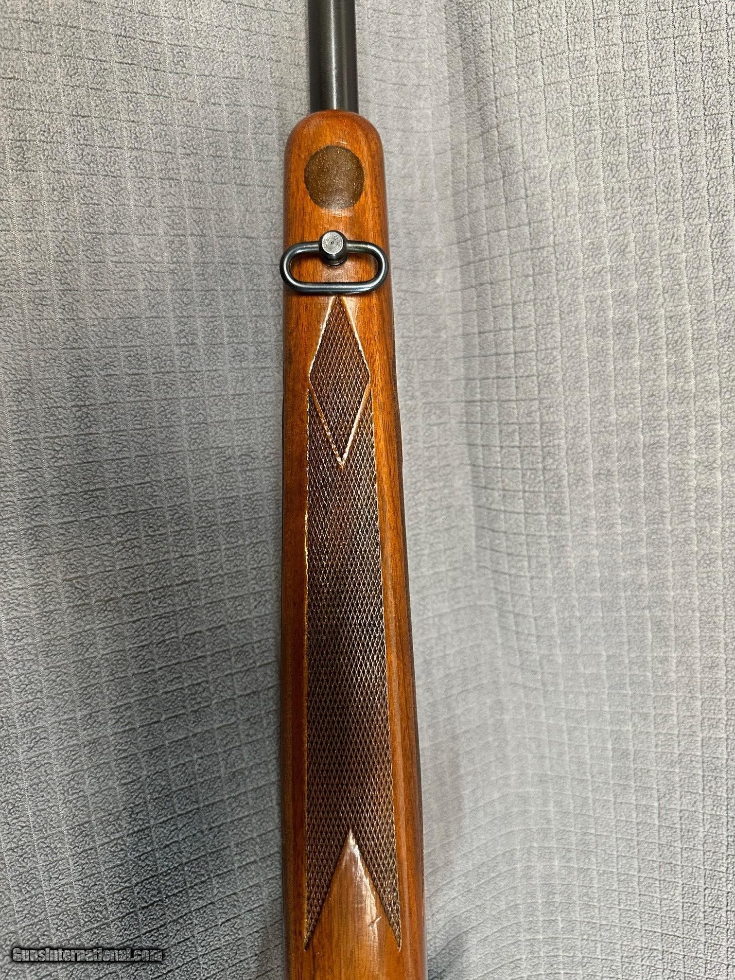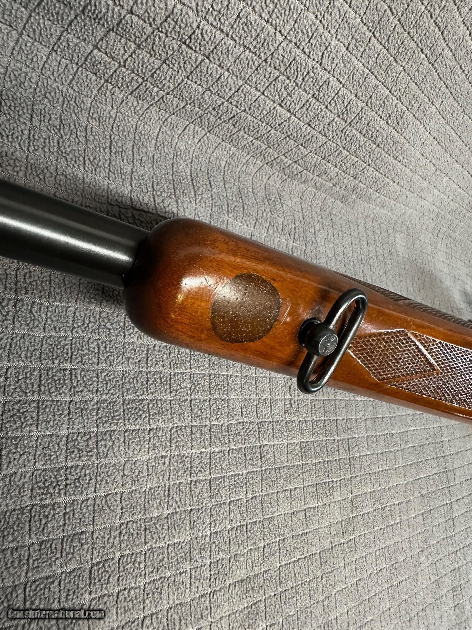 Description: EARLY 700 FANS! NICE 700ADL in the RARELY SEEN .222 Remington Magnum caliber. This nice piece was produced in 1964, the first year with 24" barrel. Bore is excellent. Rear sight is absent from scope clearance.Holes plugged. Original blue on this rifle is 98% with bolt handle turning plum. Stock finish is original on a pretty nice piece of wood for a ADL. There are a few light marks here and there. NO explanation, but there is a roughly nickel size oval inlay of what appears to be glass bedding on bottom of forend(see pic). Removed stock looking for reason(hole plug, damage , etc and nothing). Action has been glass bedded and appears done well. Trigger is factory. Has Weaver base blocks. This is a sweet rifle in overall great condition and I bet a shooter. $75.00 Shipping and Insurance (lower 48) to your FFL NO CA Sales. Thanks for looking. SOLD Curio/Relic: Yes |
