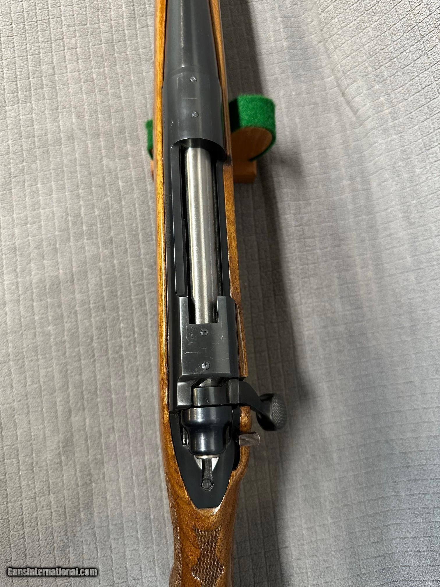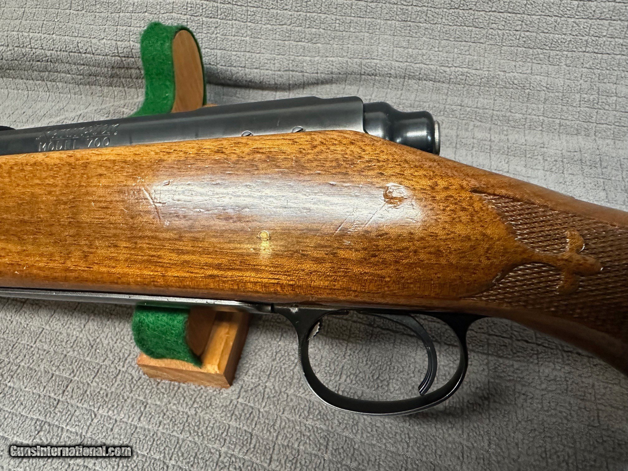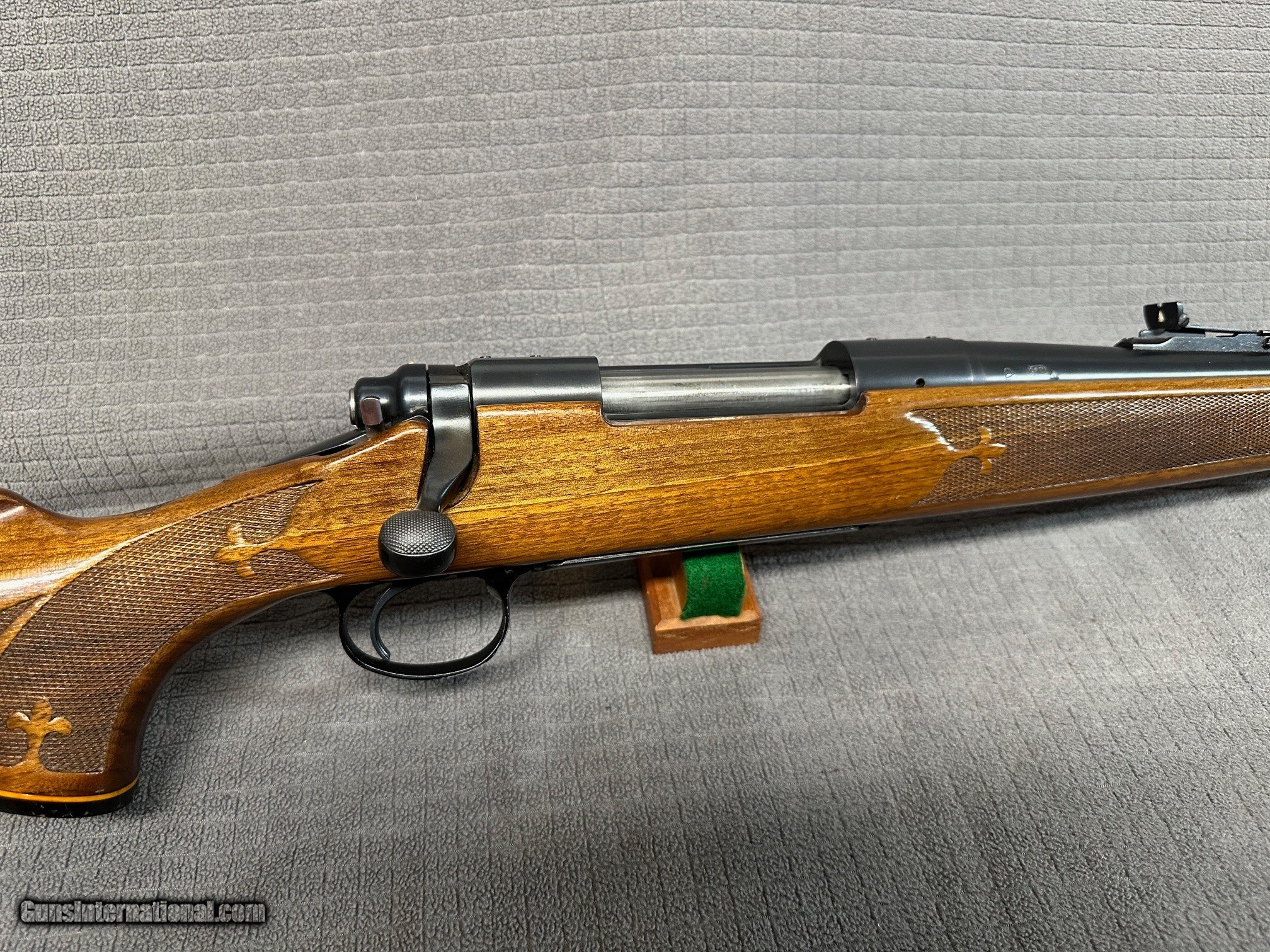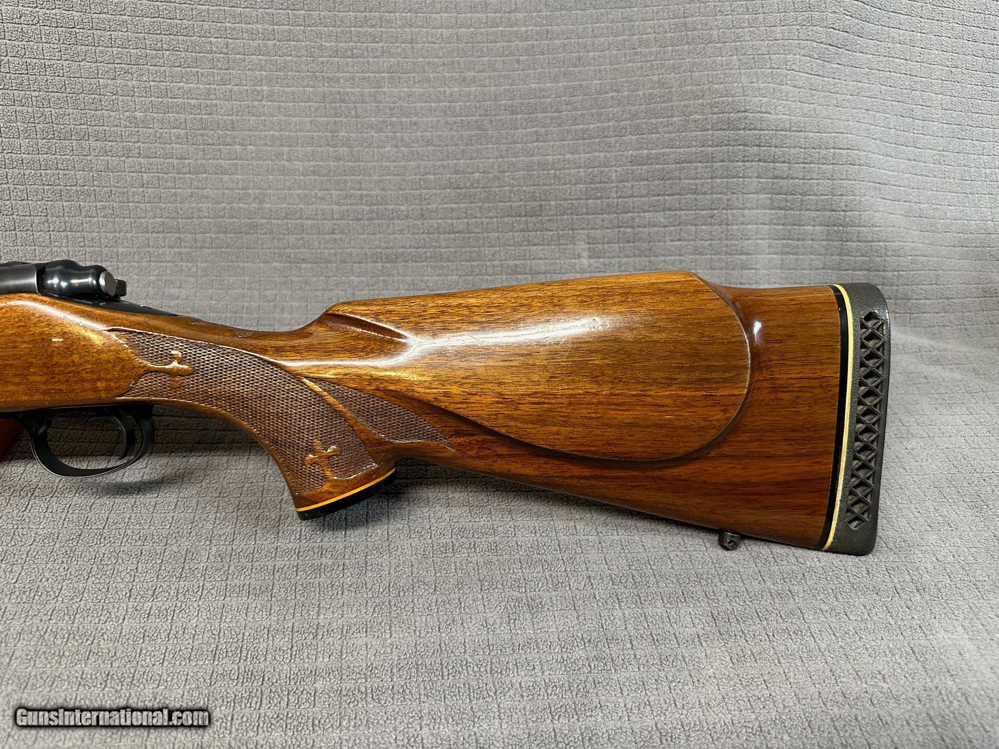 Description: EARLY (1965) 700BDL in VERY Nice original condition. In this time frame Remington was using stainless steel barrels on there magnum rifles. I believe they were supplied by Hart Barrels and they shot extremely well. Many you find these days have the bluing flaking off as it did not adhere well to the stainless . This one is an exception, with no flaking present and the metal finish in the 98% range. 24" barrel and bore is like new. Bolt face and action wear indicate few rounds thru this rifle. The stock has some light handling marks and impressions with only one noteable deeper round impression(pictured) above trigger on left side. I would still rate wood in the 95% range. These early 700's were the best quality Remington ever produced. Thanks for looking. Shipping and insurance is $75.00(lower 48) to your FFL. NO CA Sales. SOLD |