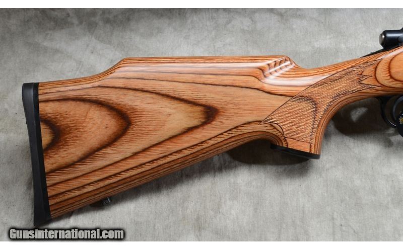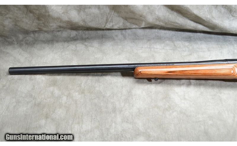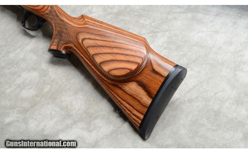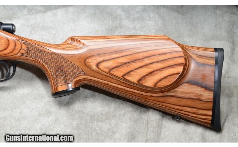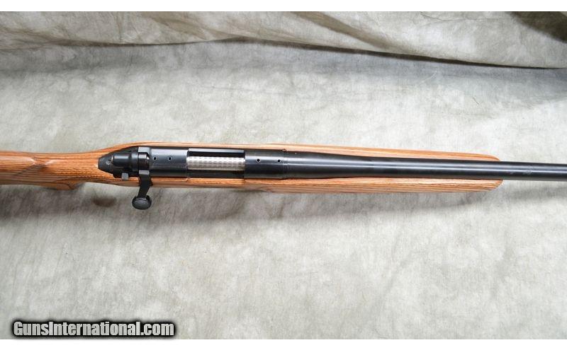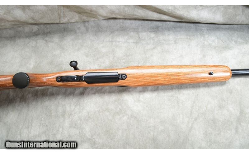 Description: This varmint rifle features heavy contour barrel, jeweled bolt, and is ready for scope. It has a very nice heavy laminated hardwood stock and soft recoil pad. .22-250 Remington SOLD Chambers: 5 round Metal Condition: Excellent. Wood Condition: Excellent. Bore Condition: Shiny and bright. Barrels: 26 inch heavy contour (Dia. = 0.83 inches) Triggers: Factory trigger. Stock Dimensions: 13-1/4 inch LOP. Fore End: Heavy beavertail for bench/sand bag use. Butt Pad: Soft rubber pad. Weight: 9 lb - 11 oz Sights: Drilled and tapped for scope Item Location: Rogers |