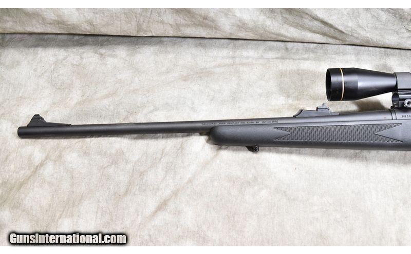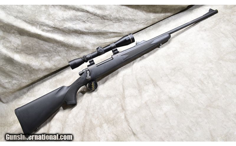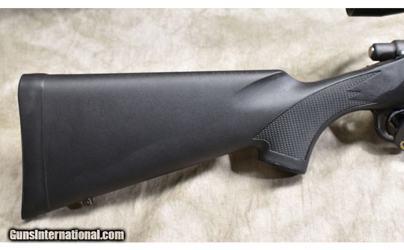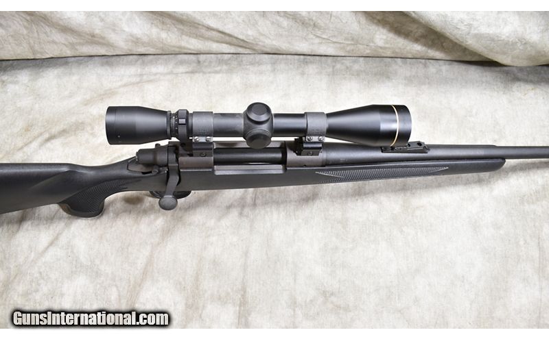 Description: Great hunting rifle featuring a black synthetic stock, internal box magazine, cheek piece, and scope sight. .30-06 Springfield SOLD Chambers: 4 Metal Condition: Excellent Wood Condition: Excellent. Bore Condition: Shiny and bright with good rifling. Barrels: 22-inch Triggers: Factory trigger Stock Dimensions: 13-1/4 inch LOP. Butt Pad: Soft and thick rubber pad Weight: 8 LB Sights: "White bead and notch 'iron' sights. Set up for scope and outfitted with a Leupold VX II, 3-9X40MM. Item Location: Rogers |