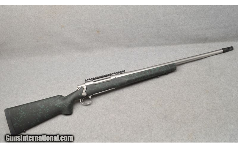 Description: This is a VERY nice Remington Arms Model 700 5R Tactical bolt action rifle in .300 Winchester Magnum. This Model 700 Tactical has the same barrel as the U.S. Army Model M24 used by our snipers. The stainless steel barrel and receiver are excellent. The stainless steel heavy contour 5R 24" barrel is excellent with sharp clear rifling in its bore. The HS Precision Kevlar composite black with green spider webbing stock is excellent. This is not the normal run of the mill Model 700. This Model 700 rifle is designed for precision shooting. This Remington bolt action rifle does not come with a box or any other accessories. .300 Winchester Magnum SOLD Metal Condition: Excellent Bore Condition: Excellent Barrels: Stainless Steel Heavy Contour 24 Triggers: Factory X-Mark Pro Stock Dimensions: LOP 13 1/2" Height 7" Length 47 Fore End: Matching HS Precision Kevlar Composite Butt Pad: Factory Remington Black Rubber Pad Weight: 9 Lbs 6 Oz. Sights: None - Picatinny Rail Item Location: West Chester, OH |