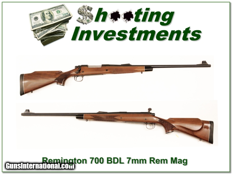 Description: This is a very nice Remington BDL in 7mm Rem Mag. The blue is in excellent condition and I am sure never fired many rounds. The wood has only a couple minor marks. This will make a very nice hunting gun or addition to your collection. I am selling this one on consignment and as such lay-a-way can’t be used. It does of course have the standard 3 day inspection. Shipping and insurance is $30 or $18 more if you want it shipped in a new Plano hard case. Please email me with any questions or larger pictures. (I now consign quality firearms only 10%! Let me know if you have any you would like to sell!) [15-0595] Payment: Payment is by Money Order, Cashiers Check or Personal Check. I can now also accept MasterCard and Visa with a 3% convenience fee. PayPal can be used for some items but never firearms. Please let us know if you would like to pay via PayPal. Shipping: The shipping charge will be listed in each description. It is $30 for most guns. Some heavy guns or those insured for over $2000 may be higher. Shipments to Alaska and Hawaii are higher because air shipment is required. Most firearms are shipped within 5 days of receipt of payment. We prefer shipping at the beginning of the week to avoid firearms in transit over weekends. We package all shipments carefully and insure them for the full purchase price, rounded up to the next $100. In the unlikely event that damage occurs, it is important that you save all packaging material for the claims process. Optics are shipped Priority Mail and most other non-firearm shipments are shipped First Class. Returns: Our return policy is simple. If for any reason you are not pleased with your purchase, you may return your item for a refund. The only exception is ammunition, it cannot be returned. It is important to us that you are happy. Guns cannot be fired or dissembled before returning them and must be returned in the same condition as received. Notification of a return must occur with-in 3 days of receipt at your dealer. Shipping, convenience and dealer fees are not refundable and are the responsibility of the buyer. Lay-a-way: If needed, we offer a 60 day lay-a-way option on most firearms. It is 1/3 now, 1/3 in 30 days and 1/3 in 60 days. Lay-a-way firearm sales are final. Consigning your firearms with Shooting Investments: We will help you get top dollar for your firearms. While most local guns shops charge 20% or more, our fee is only 10% with a minimum of $50. At your local gun shop it might take months to sell. Selling on-line provides instant access to thousands of interested buyers. You won’t find any other on-line dealer willing to sell your firearms for only 10% or listing every gun on 4 separate s. Selling through an House typically costs the seller 15% and the buyer an addition 15% (so 30%) and you have to wait several months to sell and longer to receive funds. If properly priced, we will sell your firearms in a week or two. Send us an email or give us a call and we’ll explain how easy it is for you to get top dollar. Trading: We collect guns and usually just trade for guns we want to add to our collections. We often sell guns for others wanting to purchase one of ours. We find this the most fair to both of us. Our Commission is only 10% and we hold the gun you want until yours sells. Please contact us if you want to sell one of yours to buy one of ours. Help for California Buyers: We are happy to ship to California. It is the buyer’s responsibility to make sure any item you buy is legal in your state. We are also happy to help with your purchase of a firearm from someone other than us. If you see a gun you would like to buy but the seller can’t or won’t ship to California we can help. You buy the gun and have it shipped to us. We’ll then ship it to your California dealer. The cost for this service is only $30 + shipping. Let me know if we can help! SOLD |