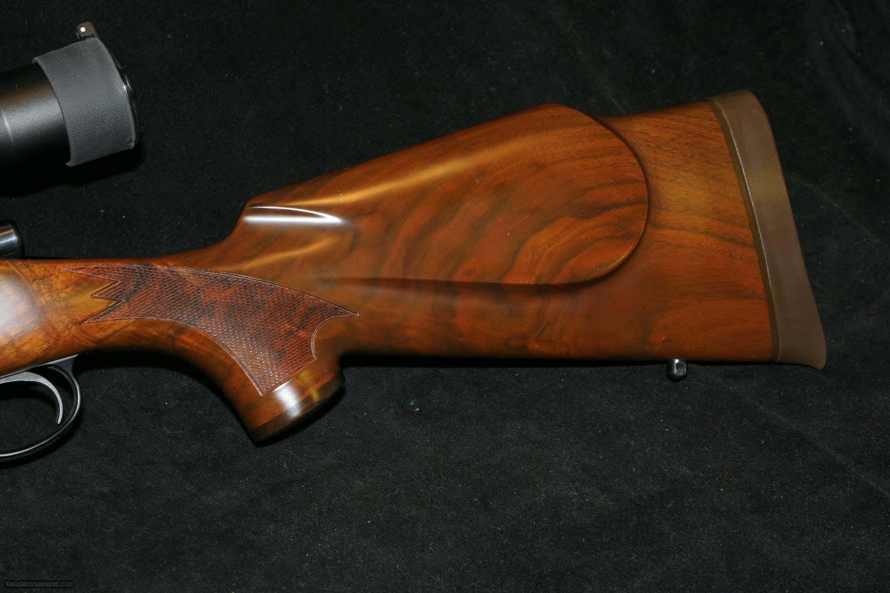 Description: REMINGTON 700 BDL CHAMBERED IN 6MM. THIS HAS A "C-GRADE" STOCK WITH UPGRADE AMERICAN WALNUT AND ROSEWOOD FOREARM TIP AND GRIP CAP AND RUBBED OIL FINISH. A 24" HEAVY VARMINT TAPER BARREL IS IN EXCELLENT CONDITION. COMES WITH A BARSKA 6.5-20X WITH SMALL DOT RETICULE. SOLD |