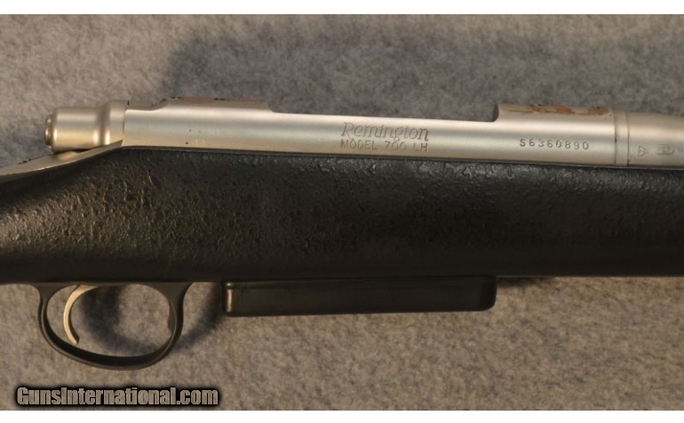 Description: This is a pre-owned Remington Left Handed 700 Custom in .338 Remington Ultra Magnum with a 26“ barrel. The rifle is in excellent condition with just a couple of small scratches on the underside of the barrel and a couple of small scratches and a chip on the right side of the stock. The rifle has been dropped into a custom fiberglass stock and still has some red Loctite showing from where scope bases were removed. SOLD Caliber Info: .338 Remington Ultra Magnum Metal Condition: Excellent condition with some very small scratches. Wood Condition: Excellent condition with a chip and a couple of small scratches. Bore Condition: Clean with bright lands. Barrels: 26” Stock: Aftermarket fiberglass stock. Stock Dimensions: 13 ¾ “ Fore End: Aftermarket fiberglass stock. Butt Pad: Pachmayr Decelerator recoil pad. Weight: 7 ½ lbs. Sights: Tapped for scope, missing plug screws. Item Location: Glendale, AZ |