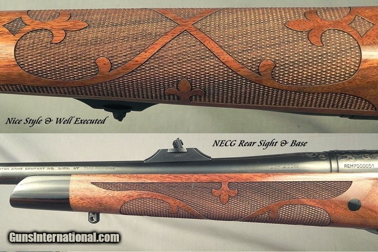Description: #REM7000051, Remington 7mm Rem. Mag. Model 700 Custom Shop Bicentennial to Celebrate 200 years from 1816 to 2016, A Limited Edition Piece, 24" barrel with a 1 in 9 1/4" twist, Adjustable island rear sight by New England Custom Guns, Front ramp with a sight protector, Gold band at the muzzle, Jeweled bolt body, X-Mark Pro adjustable trigger, Drilled & tapped on the receiver ring and bridge, Two panel bolt knob checkering, Steel hinged floorplate and steel trigger guard with a center bow release, C Grade American Black Walnut, It is a nice stick of wood with excellent color and contrast, The Custom Shop stock with Fleur-De-Lis checkering, Ebony forend tip, Commemorative grip cap, Double crossbolts, Cheekpiece, Sling eyes on the stock, 13 7/8" LOP over a 1" Remington pad, 8 Lbs. 11 oz., It remains unfired, The receiver top and cylinder of the barrel engraved, The floorplate has a Gold Inlay of Eliphalet Remington walking with his first forged barrel that he made into a flintlock rifle. It comes in a commemorative Bicentennial box with a historical Remington timeline and a certificate of authenticity. The Remington Model 700 was first offered to hunters and shooters in 1962. Remington is America's Oldest Gunmaker. SOLD Rifle Caliber: 7mm Remington Magnum |