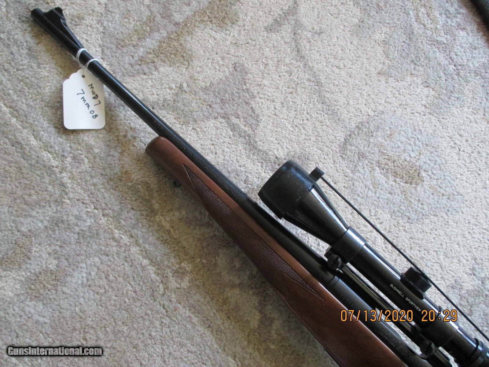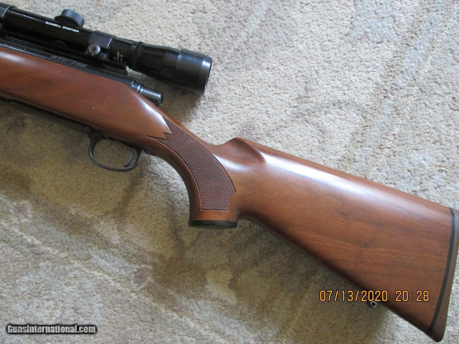 Description: REMINGTON MODEL SEVEN ...WALNUT STOCKED....7MM/08 REM....MISSING REAR SIGHT FOR SCOPE MOUNT....HAS BUSHNELL SPORTVIEW SCOPE ...SMALL MARKS IN WOOD RH STOCK MIDWAY BETWEEN PISTOL GROP AND HEEL...CLEAN RIFLE....$795.00 AND $50.00 SHIPPING.......///SALE PENDING/// SOLD Manufacturer: REMINGTON Model: MODEL SEVEN Condition: EXCELLENT |