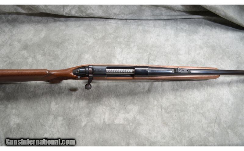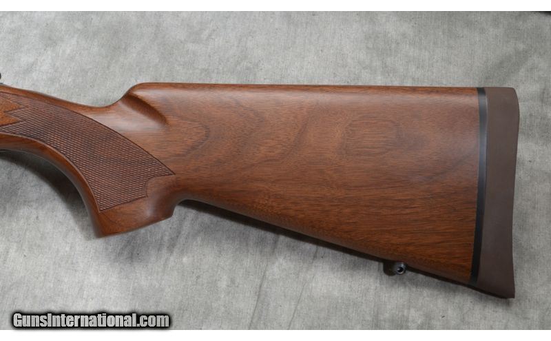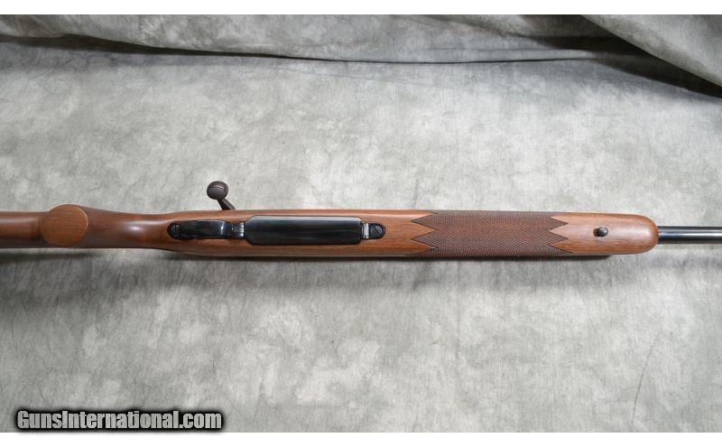 Description: Nice looking adult size .22 rifle featuring walnut pistol grip stock wit black grip and tip caps. .338 Winchester Magnum SOLD Metal Condition: LNIB. If this one was fired it wasn't fired much. Wood Condition: LNIB Barrels: 24 Inch Stock Dimensions: 13 - 1/4 inch LOP Butt Pad: Thick rubber pad Weight: 6 lb. - 11 oz. Sights: Hooded bead and ramp-type notch open sights. Drilled and tapped for scope. Item Location: Rogers |