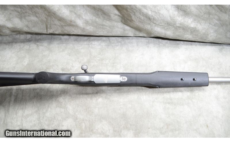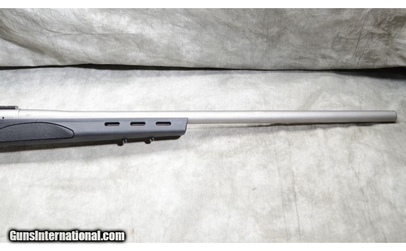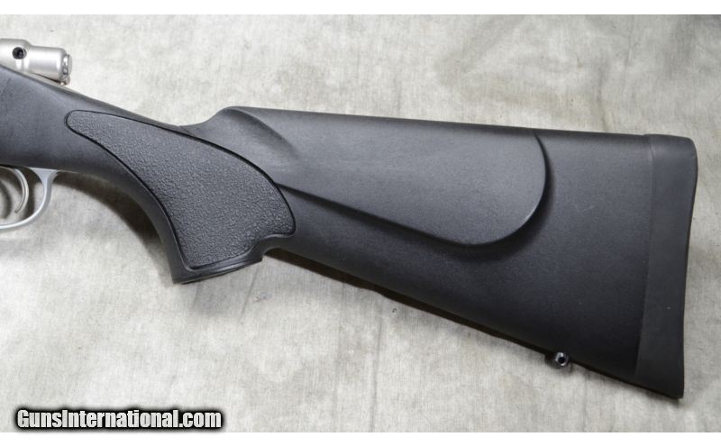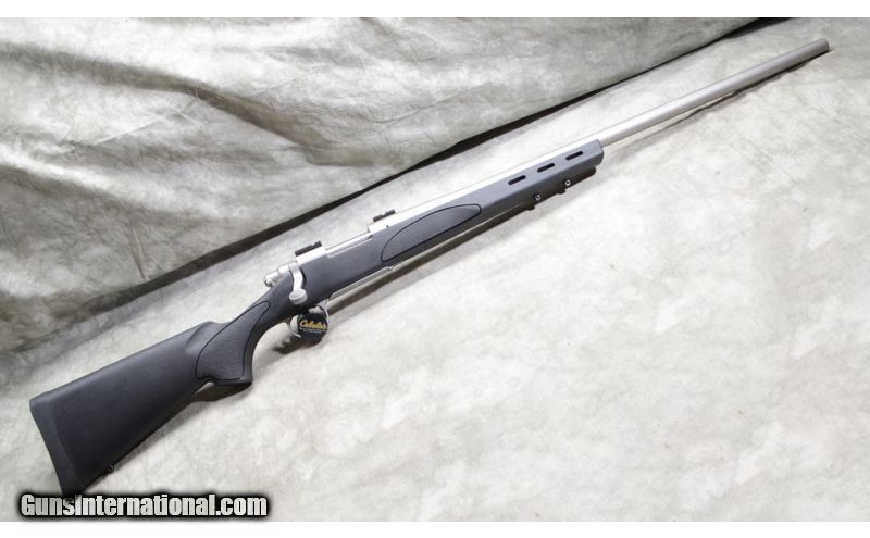 Description: Varminter with heavy satin stainless barrel and heavy black polymer stock. SOLD Caliber Info: .22-250 Remington. Chambers: 4 round internal magazine with hinged floor plate. Metal Condition: Very good. Wood Condition: Very good. Bore Condition: Shiny and bright with good rifling. Barrels: 26 inch satin stainless steel. Triggers: Factory trigger. Stock: Black synthetic with pistol grip. Stock Dimensions: 13 - 1/4 inch LOP. Fore End: Beavertail. Butt Pad: Thick rubber pad. Weight: 8 lb. - 8 oz. Sights: Set up for your choice of scope. Item Location: Rogers,, MN |