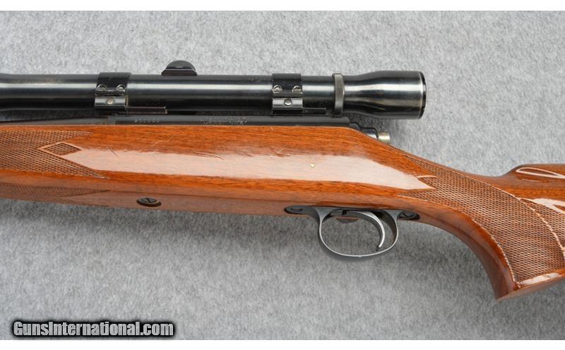 Description: Stock shows scattered dings and scratches, overcoat of finish., Very Good bluing. SOLD Metal Condition: Very Good Wood Condition: Checkered walnut Bore Condition: Bright Sharp Barrels: 24 Tapered Triggers: Factory Trigger Stock Dimensions: 13 1/4 LOP Butt Pad: Remington plate Weight: 8 lbs. 7 oz. Sights: Weaver K8 Scope Item Location: Buda, TX |