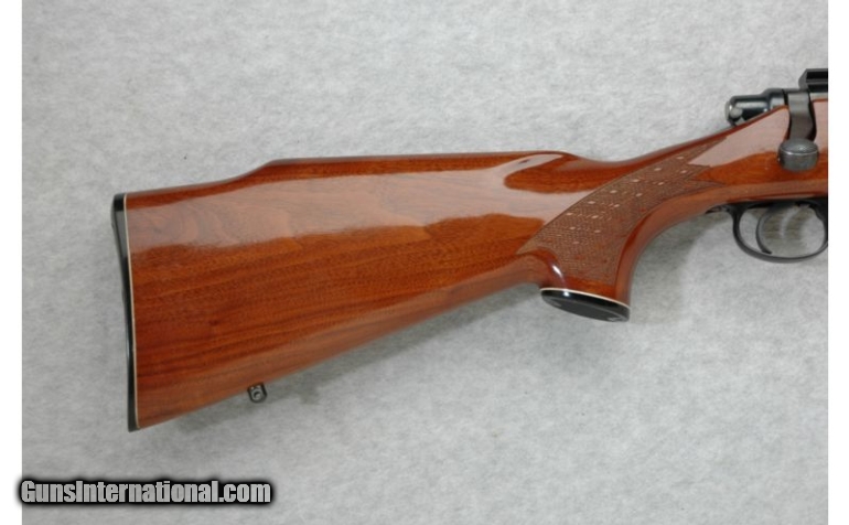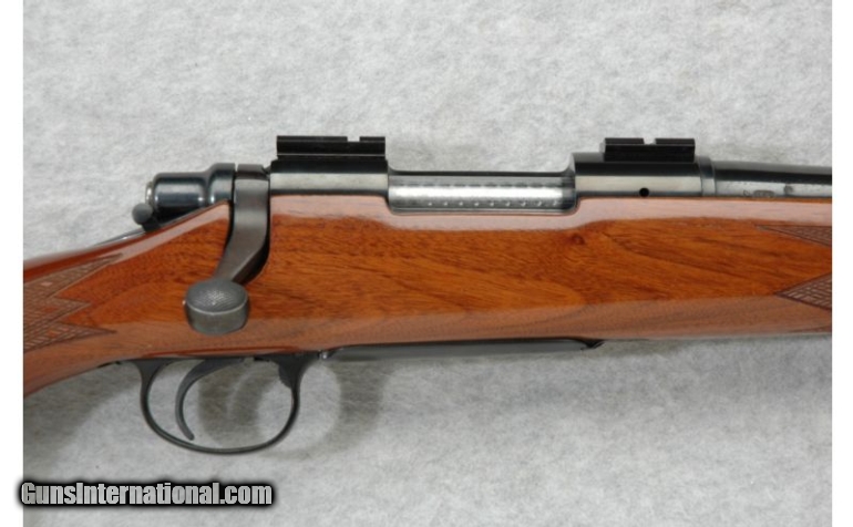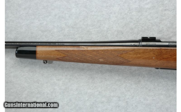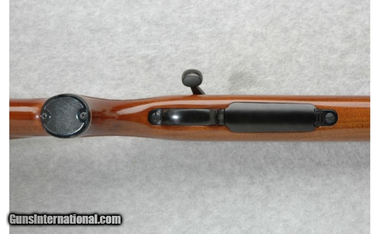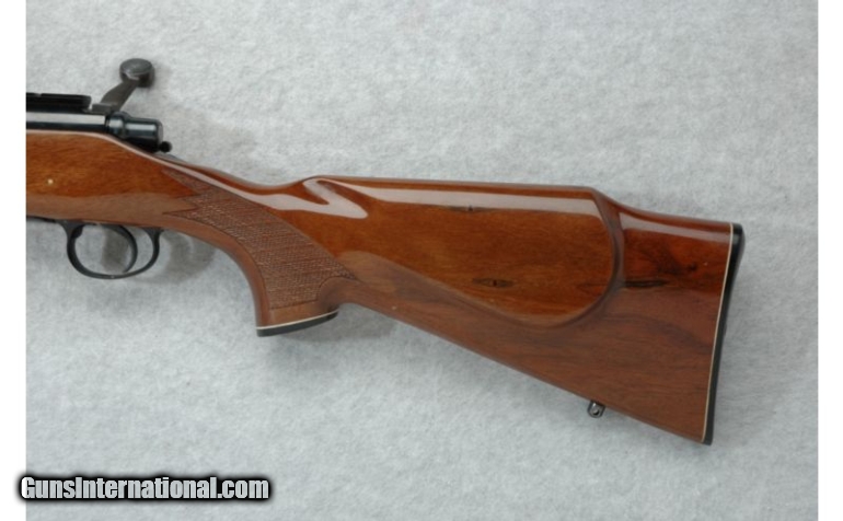 Description: SOLD Caliber Info: .243 Win. Chambers: Hinged floorplate. Metal Condition: Very good. Wood Condition: Good. Has handling marks including two deeper ones on the left side forearm. Bore Condition: Very good. Barrels: 22 inches. Stock: Checkered high gloss walnut with a raised cheekpiece and black cap. Knurled bolt handle. Stock Dimensions: LOP 13 3/4 inches. Fore End: Checkered high gloss walnut with a black tip. Butt Pad: Checkered hard black plastic. Weight: 7 lbs. 4 oz. Sights: Scope mount base attached. No iron sights. Item Location: Richfield, WI |