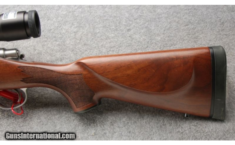 Description: This hard to find Remington Model 700 .30-06 Limited Edition, 100 Anniversary rifle is as new in box and comes with a great Nikon rifle scope. SOLD Manufacturer: 2006 Caliber Info: .30-06 sprg. Chambers: Bolt action repeater. Metal Condition: Like new in box. Wood Condition: Like new in box. Bore Condition: Like new. Barrels: 24 inch stainless steel fluted. Triggers: Single stainless steel. Stock: Very nice American walnut with a checkered pistol grip, cross bolts and black grip and forearm tips. Stock Dimensions: 13 1/4 Inch LOP. Fore End: Matching checkered walnut with a black forearm tip. Butt Pad: Remington black rubber butt pad. Weight: 8 LBS 6 OZ as pictured. Sights: Nikon Prostaff 4-12 X 40 rifle scope. Extras: Comes with the scope, tally bases and rings and the factory box. Item Location: Owatonna, MN |