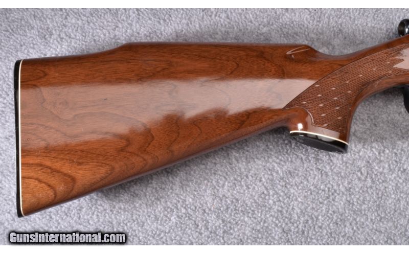 Description: Remington is in excellent overall condition showing only light use and handling marks. Sling swivel studs are missing from front and back positions. Bluing and bore are excellent. No box. SOLD Manufacturer: S/N B6787XXX Caliber Info: .30-06 Sprg. Metal Condition: Excellent Wood Condition: Excellent Bore Condition: Excellent Barrels: 22 Triggers: Factory Stock: Skip Line Checkered Walnut - Black Pistol Grip Cap - Monte Carlo Cheekpiece Stock Dimensions: 13 3/8" LOP Fore End: Skip Line Checkered Walnut with Black Forend Cap Butt Pad: Remington Black Plastic Butt Plate Weight: 7 LB Sights: Post & Bead Front - Drilled Receiver Item Location: Wheeling, WV |