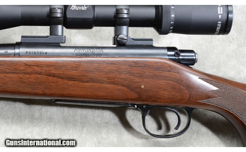 Description: This Remington features dark walnut stock with pistol grip, jeweled bolt, knurled bolt handle, and set up with a Burris 3-9x scope. .300 Savage SOLD Chambers: "3 + 1 capacity, internal magazine with hinged floor plate. Metal Condition: Excellent with few signs of use. Wood Condition: "Excellent, with very minimal signs of wear. Barrels: 24 inch blue barrel. Triggers: Factory grooved trigger. Stock Dimensions: 13 - 1/4 inch LOP. Butt Pad: Rubber pad. Sights: Setup for your choice of scope and outfitted with a Burris 3-9x scope. Item Location: Rogers |