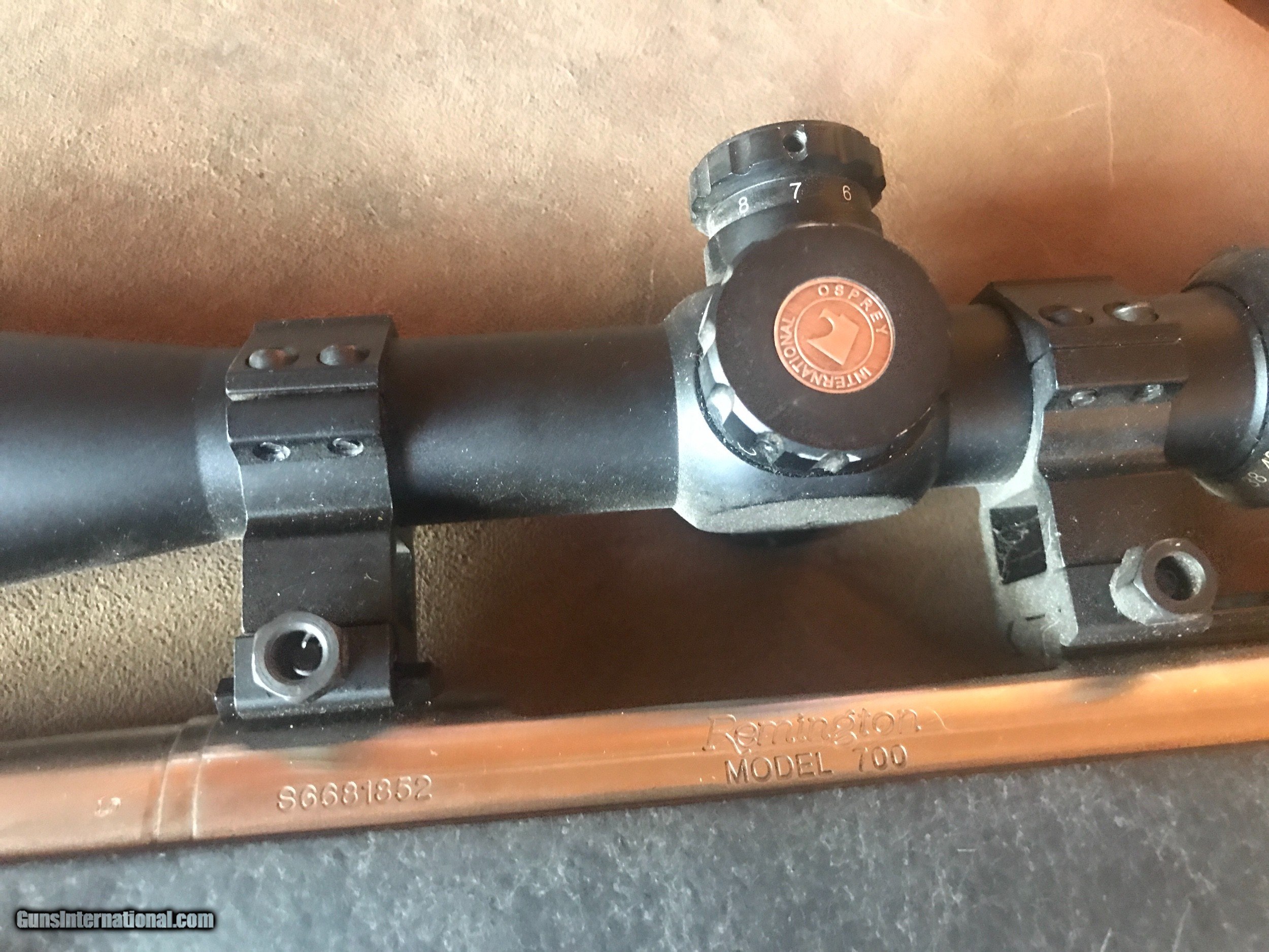 Description: Remington 300 ultra mag Model 700 with Osprey Intl scope. My late husband had this rifle for a couple of years. SOLD Manufacturer: Remington Model: 700 Ultra Mag 300 Serial Number: S6681852 Item Location: Snowflake, Arizona |