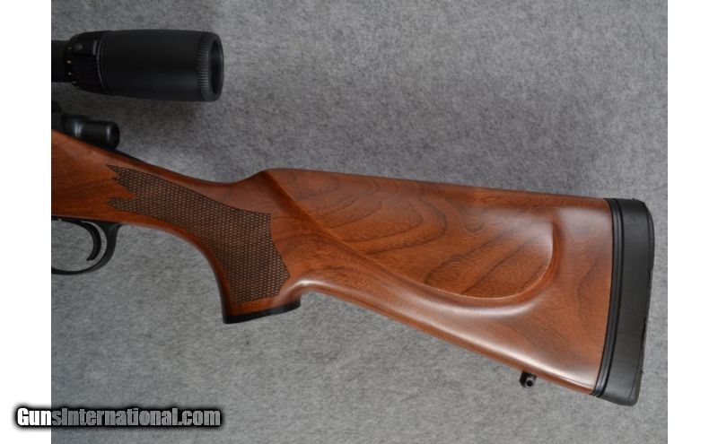 Description: Very nice pre-owned Model 700 in .300 WIN MAG with a Nikon Buckmasters 3-9X scope. Scope is clear with a duplex reticle. Serial number has been checked with the Remington recall database and this rifle is not affected by the recall. SOLD Manufacturer: S/N G644XXXX Caliber Info: .300 WIN MAG Metal Condition: Very good condition for age with normal wear and use marks showing. Wood Condition: Very good condition with several light handling marks. Bore Condition: Good condition, good rifling, bright and shiney, no pitting or rust. Barrels: 26 Inches. Triggers: LOP - 13 1/2 Inches. This is NOT the XMP trigger which is affected by the recall notice. Stock: Nicely figured checkered walnut. Butt Pad: Remington rubber recoil pad. Weight: 9 Lbs 0 Oz as shown. Sights: No sights, but drilled and tapped for scope bases. Includes a Nikon Buckmasters 3 - 9X scope. Item Location: Lone Tree, CO |