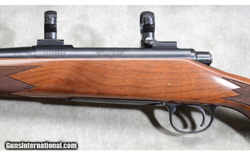 Description: The features of this Remington include jeweled bolt and knurled bolt knob, set up for scope with rings and bases, and has internal magazine with hinged floor plate. SOLD Caliber Info: 6.5 mm X 55 (6.5 Swedish Mauser) Chambers: 3-round internal magazine with hinged floor plate. Metal Condition: Excellent. Wood Condition: Very good to excellent. It has a flattened patch of checkering and a couple of shallow scratches and dings. Bore Condition: Shiny and bright. Barrels: 22 Inch - blue, without sights. Triggers: Grooved factory trigger. Stock: Checkered walnut with pistol grip. Stock Dimensions: 13 - 3/8 inch LOP. Butt Pad: Rubber pad. Weight: 7 lbs. - 8 oz. Sights: Drilled and tapped for scope and includes mounting rings and bases. Item Location: Rogers,, MN |