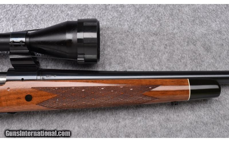 Description: Gun shows only light use with a few scratches and minor blemishes in blue. Sling studs attached and Tasco 3x-9x-50 scope on Weaver "See-Thru" Mount. No box. SOLD Manufacturer: S/N E6224XXX Caliber Info: 7MM Rem. Mag. Metal Condition: Excellent Wood Condition: Excellent Bore Condition: Excellent Barrels: 24 Triggers: Factory Stock: Skip Line Checkered Walnut with Black Pistol Grip Cap Stock Dimensions: 13 1/2" LOP Fore End: Skip Line Checkered Walnut with Black Cap Butt Pad: Remington Black Rubber Weight: 9 LB Sights: Tasco 3x-9x-50 Scope on Weaver See-Thru Mount Item Location: Wheeling, WV |