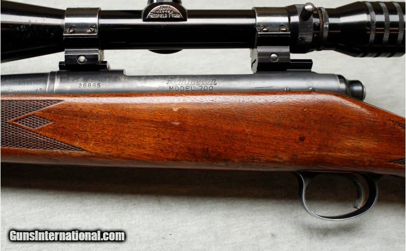 Description: Remington Model 700 with Redfield scope. 24" barrel. Barrel and receiver have lost some finish but there is no rust or pits. Stock is still looking pretty good with no major flaws. 7mm Remington Magnum SOLD Metal Condition: Good Wood Condition: good Bore Condition: bright Barrels: 24" barrel Stock Dimensions: 13.5 Fore End: checkered wood Butt Pad: Remington rubber Weight: 8 lb - 6 oz. with scope Sights: "Redfield 3x-9x scope, Weaver rings Item Location: La Vista, NE |