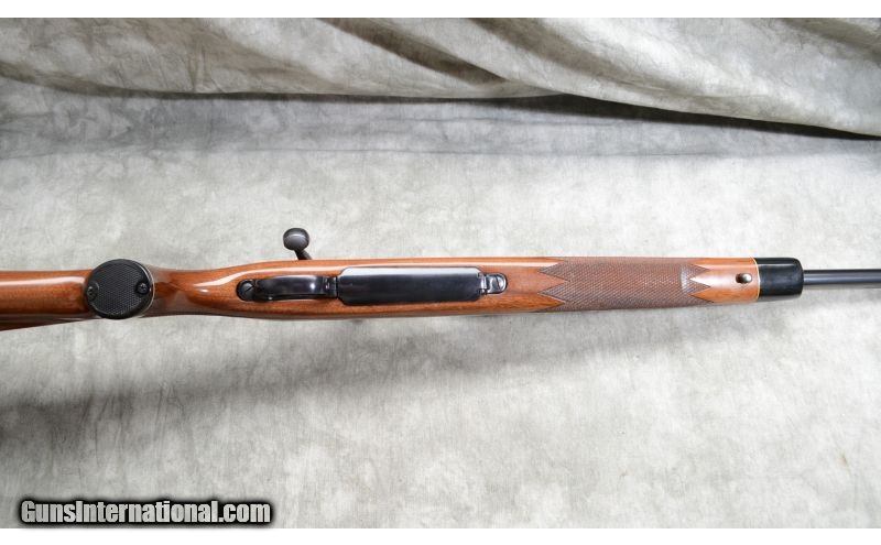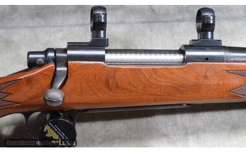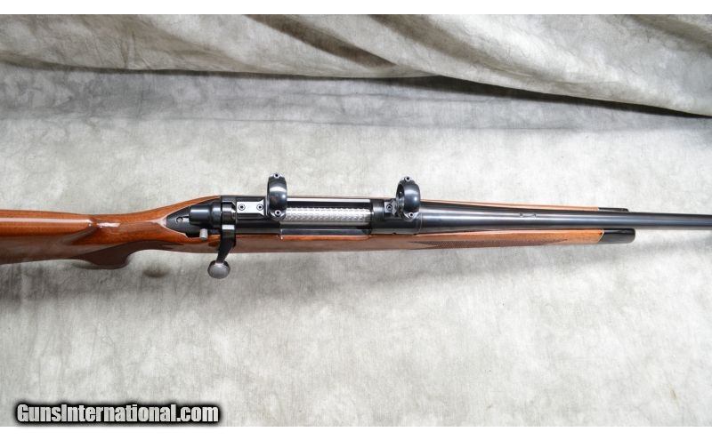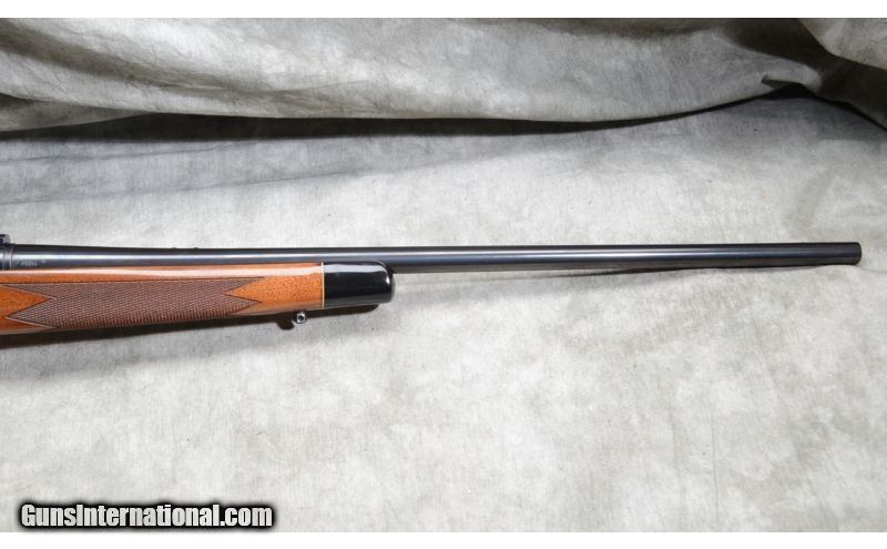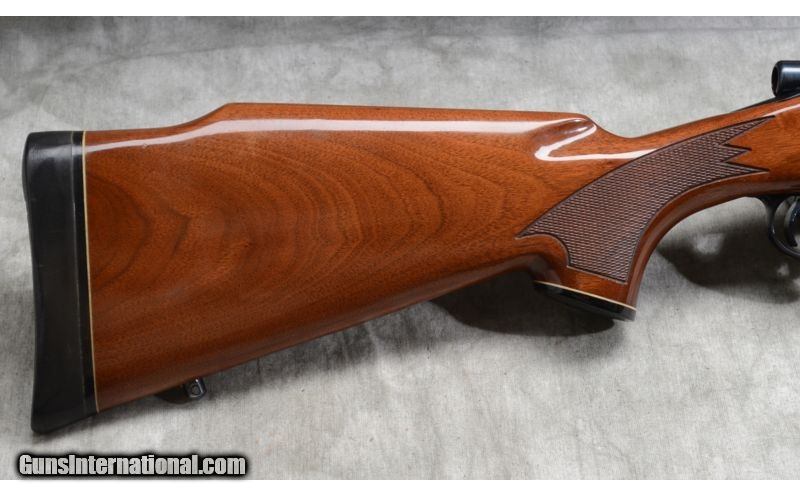 Description: This Remington features walnut Monte Carlo stock with low elevated comb, jeweled bolt and knurled bolt handle, drilled and tapped for open sights or scope, thick rubber bad and contrasting grip and tip caps with white line accents. SOLD Manufacturer: Barrel code DO implies post-1993. Caliber Info: 7mm Remington Magnum Chambers: Internal box magazine with hinged floor plate. Metal Condition: Very good to excellent. Very small amount of bluing wear on the carry point but doesn't appear to have been shot much. Wood Condition: Excellent. A few tiny handling marks. Bore Condition: Shiny and bright. Barrels: 24 inch - blue - medium contour, drilled and tapped for open sights. Triggers: Factory grooved trigger. Stock: Walnut Monte Carlo pattern with low elevated rolled over comb. Stock Dimensions: 13 - 1/4 Inch LOP. Butt Pad: Thick rubber pad. Weight: 7 lb. - 15 oz. Sights: Drilled and tapped for scope or open sights. Extras: Scope rings and bases. Item Location: Rogers,, MN |
