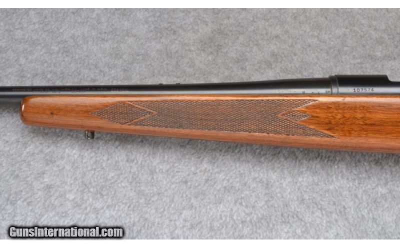 Description: Wood shows an older refinish. Original blue and bore remian excellent! Rear sight has been removed. No box. SOLD Manufacturer: S/N 107XXX Caliber Info: .222 Rem. Metal Condition: Very Good Wood Condition: Good - Refinished Bore Condition: Excellent Barrels: 24 Triggers: Factory Stock: Checkered Walnut Pistol Grip - Refinished Stock Dimensions: 13 1/4" LOP Fore End: Checkered Walnut - Refinished Butt Pad: Checkered Aluminum Weight: 7 LB Sights: Bead Front Item Location: Wheeling, WV |