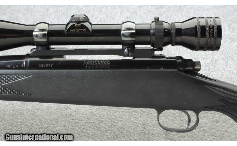 Description: This Remington 700 ADL Synthetic rifle with a Redfield 2-7x scope and chambered in .30-06 provides an excellent value in sturdy package. Manufactured 1997.Call Cabela's Lehi, Utah Gun Library directly (801)766-2521. .30-06 Springfield SOLD Metal Condition: Very good with some scratches Bore Condition: Excellent Barrels: 22 inch barrel Triggers: Adjustable trigger Stock Dimensions: 13 1/4 inch LO Butt Pad: Remington rubber pad Weight: 8 Lbs. 2 Oz. Sights: "Redfield 2-7x scope, adjustable rear sight with bead front Item Location: Lehi, UT |