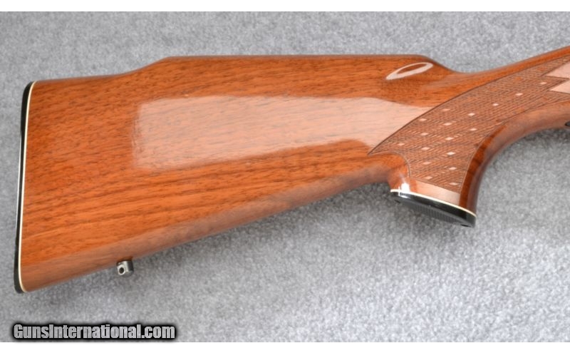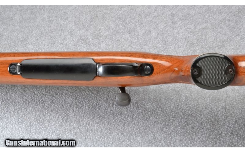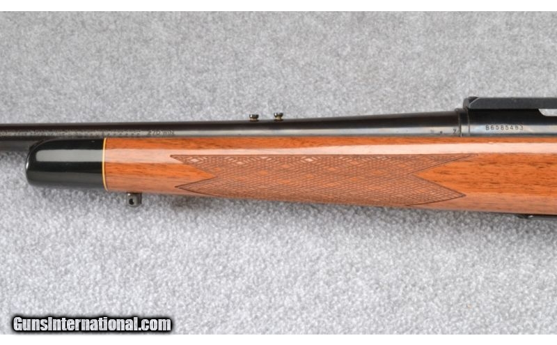 Description: Wood shows a few very light use scuffs and barrel blue has a small scuff on the underside. Rear sight has been removed and bore remains excellent. Complete with scope base. SOLD Manufacturer: S/N B658XXXX Caliber Info: .270 Win. Metal Condition: Very Good Wood Condition: Very Good Bore Condition: Excellent Barrels: 22 Triggers: Factory Stock: Checkered Walnut Pistol Grip with Black Cap Stock Dimensions: 13 3/8" LOP Fore End: Checkered Walnut with Black Cap Butt Pad: Black Plastic Weight: 7 1/2 LB Sights: Bead Front - Rear Sight Removed - Scope Base Included Item Location: Garner, NC |