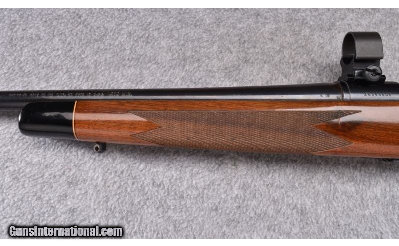 Description: Wood shows light use marks and blue has a couple hunting scuffs. Sights have been removed. Complete with rings and bases. No box. SOLD Manufacturer: S/N A634XXXX Caliber Info: .270 Win. Metal Condition: Very Good Wood Condition: Good Bore Condition: Excellent Barrels: 22 Triggers: Factory Stock: Checkered Walnut Pistol Grip with Black Cap Stock Dimensions: 13 1/4" LOP Fore End: Checkered Walnut with Black Cap Butt Pad: Black Plastic Weight: 7 1/4 LB Sights: None - Rings & Bases Included Item Location: Wheeling, WV |