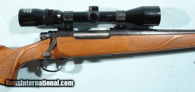 Description: REMINGTON MODEL 700 BDL .30-06 RIFLE CA. 1970’S W/SCOPE. 99% overall condition with all the blue and stock finish. Detachable sling swivels and variable 3x9 Japanese scope in Weaver mounts. Perfect working order and almost unfired with mint bore. Nice unused condition. "O W" barrel date code means 1972 I believe. SOLD Rifle Caliber: .30-06 Springfield |
