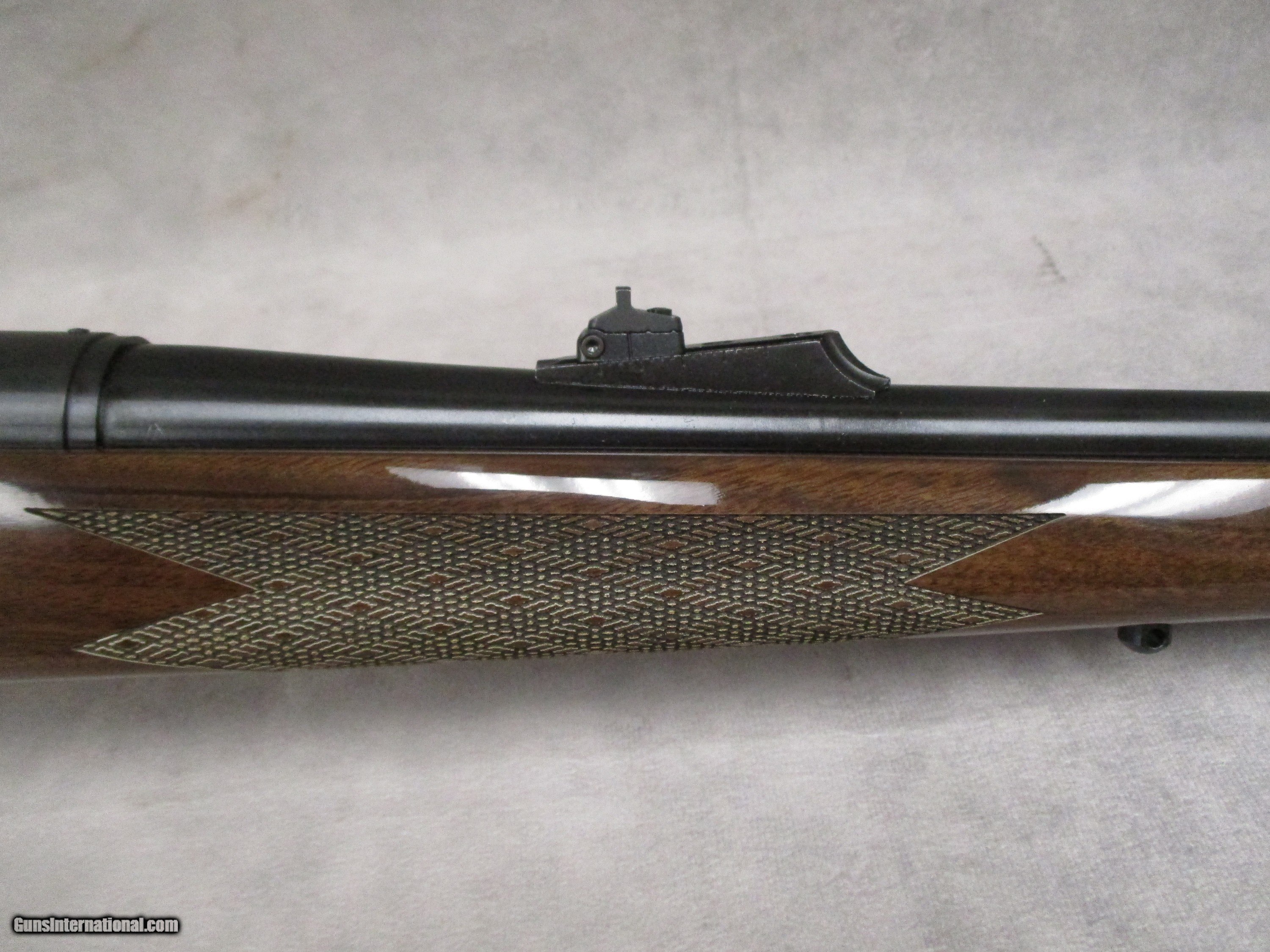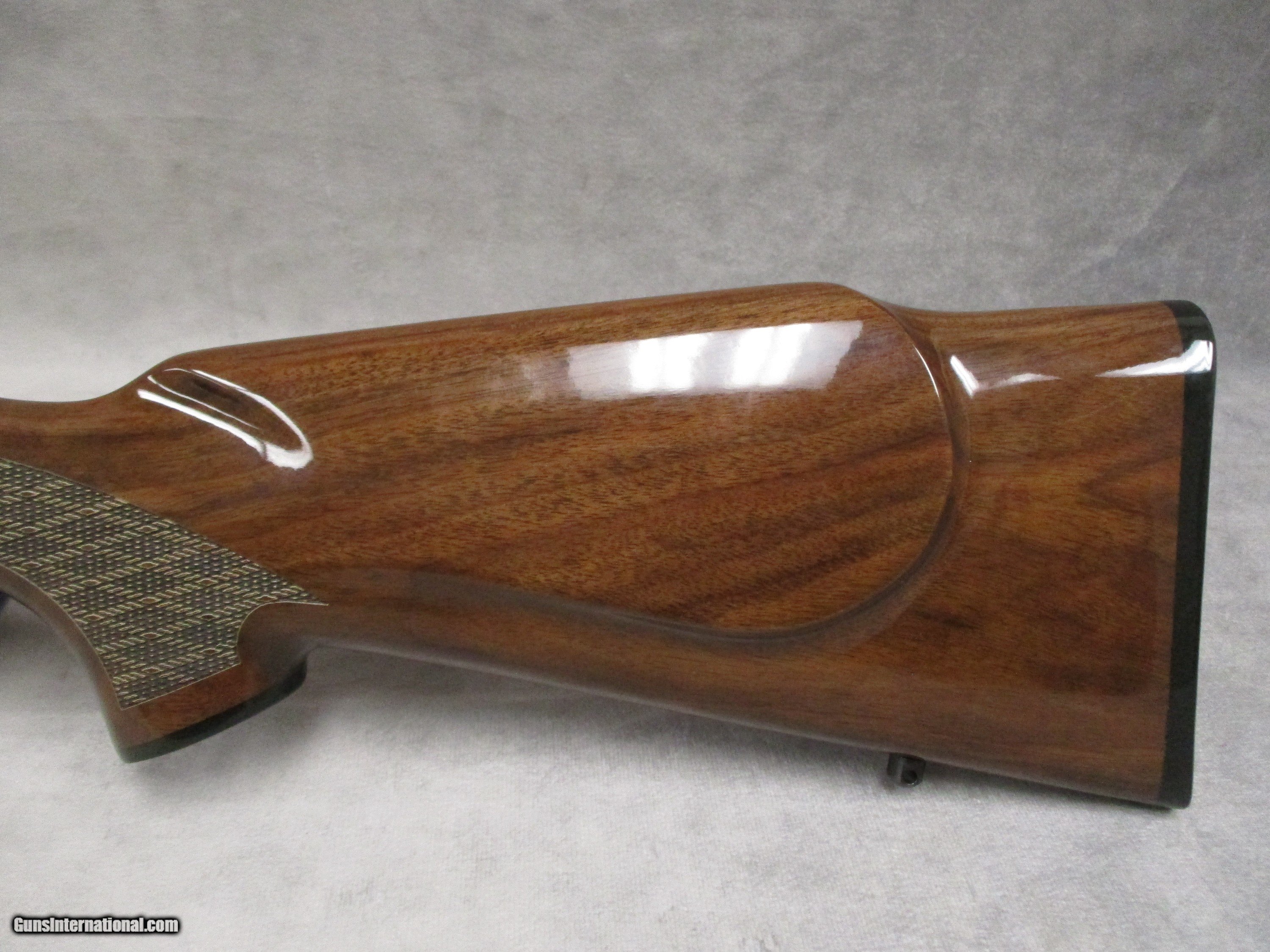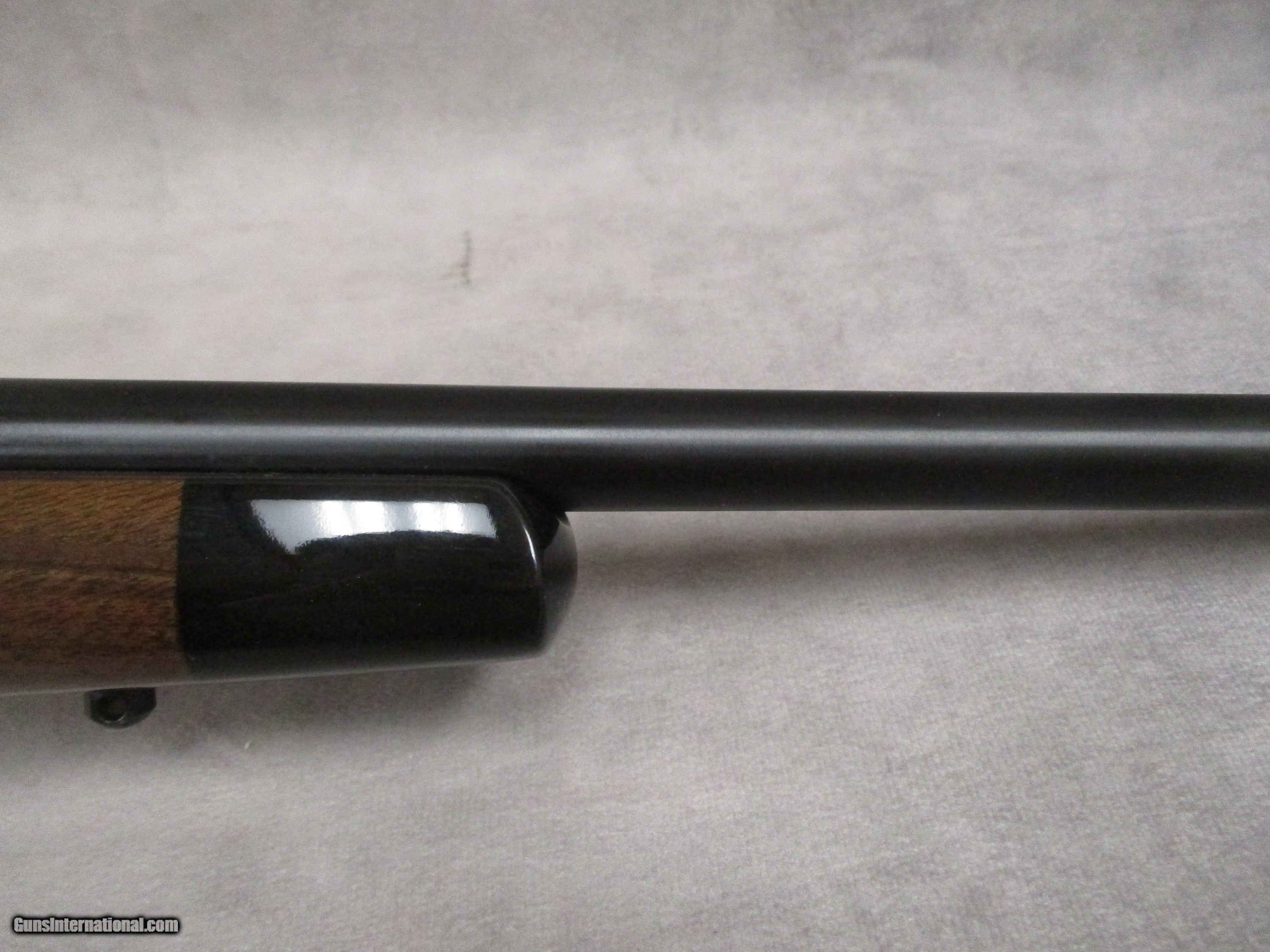 Description: The Remington Model 700 is one of the most famous, and most popular bolt action rifles ever made, so much so that it is still in production 60 years after its introduction! The Model 700 rifle has been used all over the world by hunters, military snipers, police, and match target shooters. Present company is the 700 BDL. The stock is a sleek, high-gloss-finished walnut with a black fore-end cap. It is fitted with a solid rubber butt pad. The 22” barrel uses ultra-precise 5R rifling to provide perfect shot placement on the target. This 700 BDL uses the Timney Impact 700 trigger, which is factory set between 3 and 4 lbs. in pull weight. It is not adjustable. Magazine capacity is 4 rounds plus one in the chamber. The floor plate is hinged so that, if necessary, the cartridges can be dumped all at once rather than having to be cycled through the action one at a time. Combined with the classic .30-06, the BDL would make an excellent long-range hunting rifle. The .30-06 was originally introduced in 1906 as an upgrade from the .30-03. It featured a slightly shorter case (63 mm vs the original 64.5 mm) and a modern Spitzer bullet instead of the older, heavier round nose bullet. The .30-06 valiantly served the United States Armed Forces through two World Wars, the Korean War, and dozens of small military actions before being replaced as the primary U.S. issue rifle cartridge by the 7.62x51mm NATO cartridge in the late 50s. This did not affect U.S. snipers who continued to rely on the .30-06 into the Vietnam era. The .30-06 has been chambered in some of the world’s most famous military rifles and machineguns, such as the Model 1903 Springfield (with the ‘03A3 version being built by Remington), the Winchester Model 70 (custom sniper versions being used by USMC snipers in the Pacific in World War 2), the M1 Garand, the Browning Automatic Rifle (BAR), the Browning Models 1917 and 1919 machineguns, the Lewis gun, and the Enfield Model 1917 rifle (used by the Sirius Dog Patrol in the arctic circle until just recently, the rifles being over 100 years old upon retirement). Lesser known military arms chambered in the .30-06 include the Brazilian Mauser Model 1908/34 and M1954 short rifles, the FN Model 1949 semi-auto rifle, and the Madsen Model 47. On the civilian side of things, the almost every well-known maker has chambered the .30-06 over the years with almost every major brand name today producing several models in the caliber. Over the years, .30-06 has proved itself worldwide as a reliable multi-use cartridge and has seen much use in hunting and several types of shooting competition. SOLD Rifle Caliber: .30-06 Springfield Manufacturer: Remington Arms Co. Model: Model 700 BDL Serial Number: RAR098987 Bore: Rifled, 6 grooves, 1:10 inches (1 in 254 mm) RH twist Ejectors: Manual ejection via operation of the bolt Condition: New in Box Barrels: Carbon Steel Barrel Type: Sporter contour Action: Bolt action, Model 700 Long Action Triggers: Timney Impact 700 trigger, 3.0 – 4.0 lbs. pull weight Stock: Gloss-finished, checkered walnut stock Stock Comb: 1.0 inches (25.4 mm) Stock Heel: 1.625 inches (41.275 mm) Fore End: Checkered walnut with black fore-end cap Butt Pad: Rubber pad LOP: 13.375 inches (339.725 mm) Finish: Polished Blue Weight: 7.375 lbs. Sights: Adjustable rear sight, hooded ramp front sight, sight radius 16.5 inches (420 mm) Case: Remington Box |