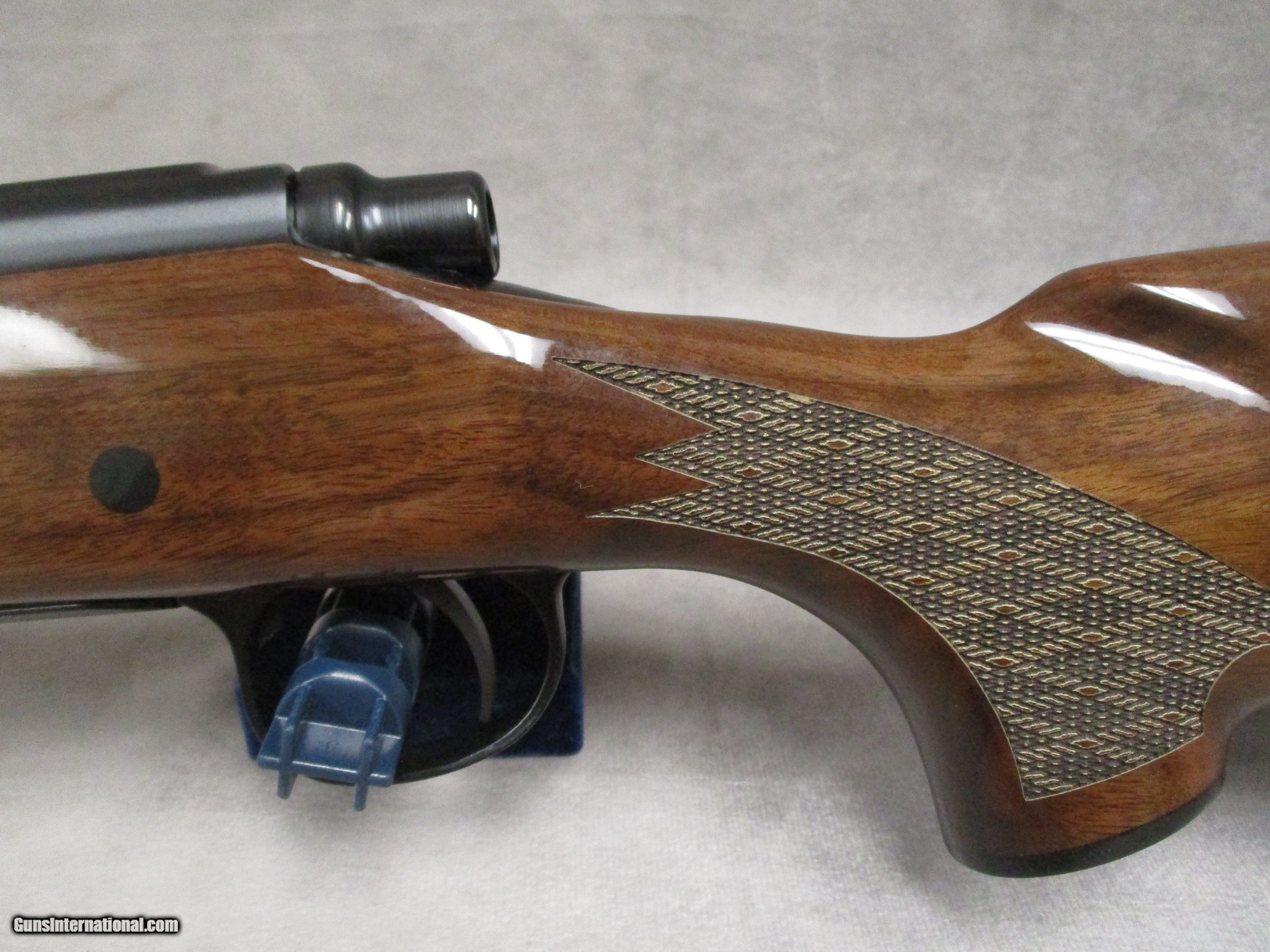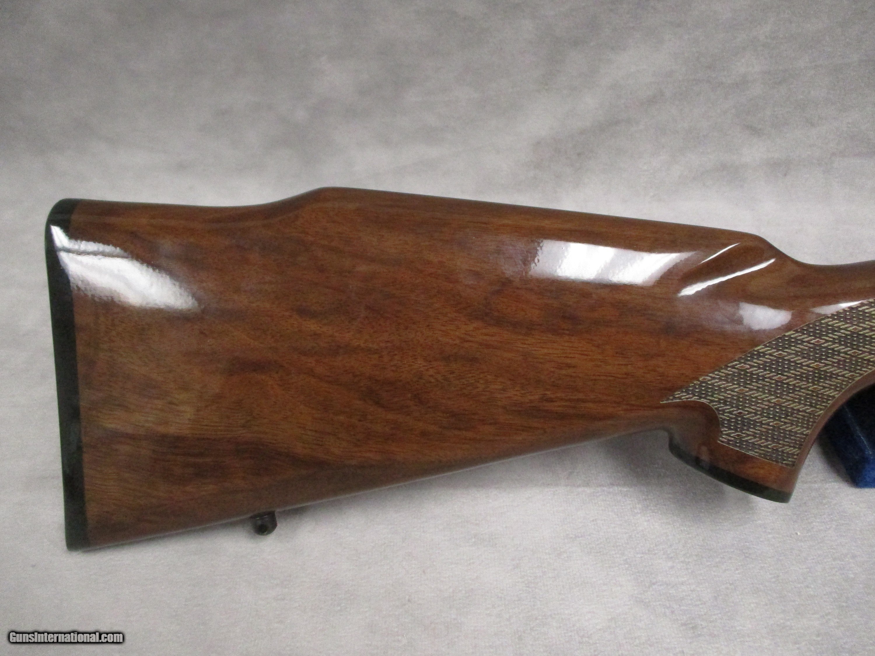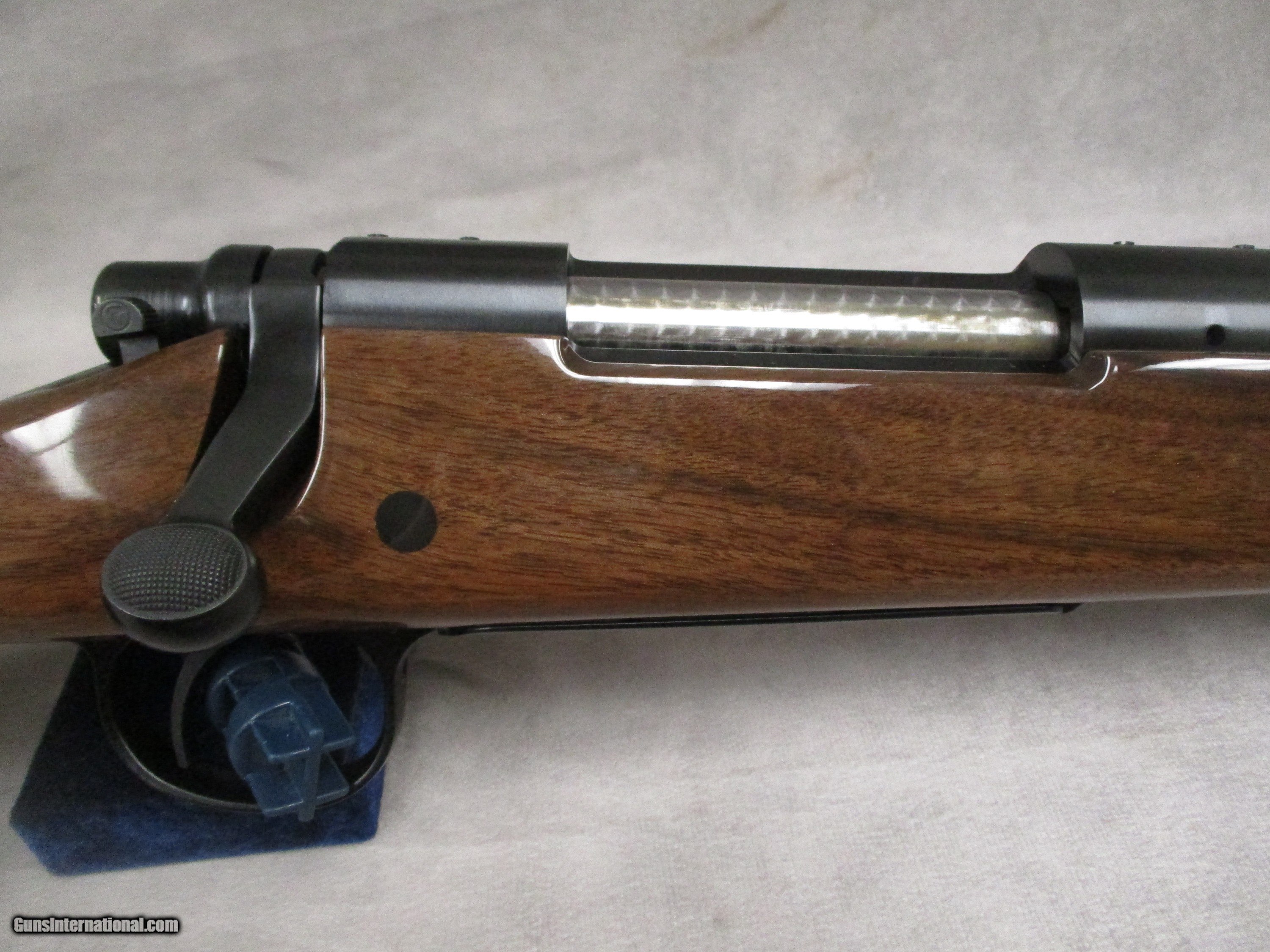 Description: The Remington Model 700 is one of the most famous, and most popular bolt action rifles ever made, so much so that it is still in production 60 years after its introduction! The Model 700 rifle has been used all over the world by hunters, military snipers, police, and match target shooters. Present company is the 700 BDL. The stock is a sleek, high-gloss-finished walnut with a black fore-end cap. It is fitted with a solid rubber butt pad. The 22” barrel uses ultra-precise 5R rifling to provide perfect shot placement on the target. This 700 BDL uses the Timney Impact 700 trigger, which is factory set between 3 and 4 lbs. in pull weight. It is not adjustable. Magazine capacity is 4 rounds plus one in the chamber. The floor plate is hinged so that, if necessary, the cartridges can be dumped all at once rather than having to be cycled through the action one at a time. Combined with the classic .30-06, the BDL would make an excellent long-range hunting rifle. The .30-06 was originally introduced in 1906 as an upgrade from the .30-03. It featured a slightly shorter case (63 mm vs the original 64.5 mm) and a modern Spitzer bullet instead of the older, heavier round nose bullet. The .30-06 valiantly served the United States Armed Forces through two World Wars, the Korean War, and dozens of small military actions before being replaced as the primary U.S. issue rifle cartridge by the 7.62x51mm NATO cartridge in the late 50s. This did not affect U.S. snipers who continued to rely on the .30-06 into the Vietnam era. The .30-06 has been chambered in some of the world’s most famous military rifles and machineguns, such as the Model 1903 Springfield (with the ‘03A3 version being built by Remington), the Winchester Model 70 (custom sniper versions being used by USMC snipers in the Pacific in World War 2), the M1 Garand, the Browning Automatic Rifle (BAR), the Browning Models 1917 and 1919 machineguns, the Lewis gun, and the Enfield Model 1917 rifle (used by the Sirius Dog Patrol in the arctic circle until just recently, the rifles being over 100 years old upon retirement). Lesser known military arms chambered in the .30-06 include the Brazilian Mauser Model 1908/34 and M1954 short rifles, the FN Model 1949 semi-auto rifle, and the Madsen Model 47. On the civilian side of things, the almost every well-known maker has chambered the .30-06 over the years with almost every major brand name today producing several models in the caliber. Over the years, .30-06 has proved itself worldwide as a reliable multi-use cartridge and has seen much use in hunting and several types of shooting competition. SOLD Rifle Caliber: .30-06 Springfield Manufacturer: Remington Arms Co. Model: Model 700 BDL Serial Number: RAR098987 Bore: Rifled, 6 grooves, 1:10 inches (1 in 254 mm) RH twist Ejectors: Manual ejection via operation of the bolt Condition: New in Box Barrels: Carbon Steel Barrel Type: Sporter contour Action: Bolt action, Model 700 Long Action Triggers: Timney Impact 700 trigger, 3.0 – 4.0 lbs. pull weight Stock: Gloss-finished, checkered walnut stock Stock Comb: 1.0 inches (25.4 mm) Stock Heel: 1.625 inches (41.275 mm) Fore End: Checkered walnut with black fore-end cap Butt Pad: Rubber pad LOP: 13.375 inches (339.725 mm) Finish: Polished Blue Weight: 7.375 lbs. Sights: Adjustable rear sight, hooded ramp front sight, sight radius 16.5 inches (420 mm) Case: Remington Box |