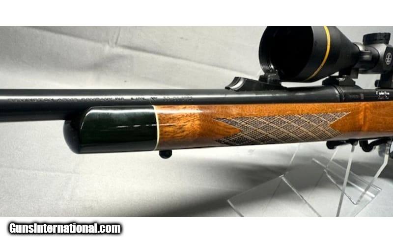 Description: The Remington Model 700 BDL has no equal, and is a superior performer in every way. It has become the standard footprint by which all other centerfire rifles are measured and continually fall short. Its strong, smooth action, consistent accuracy, classic beauty and unequaled value have made The Model 700 BDL the hunter's favorite centerfire rifle for more than 60 years. The high-gloss American walnut stock is enhanced by a distinctive black fore-end cap, Monte Carlo comb raised cheekpiece, and cut checkering. Metalwork has our rich, deep bluing for beauty and protection. Other features include a hinged magazine floorplate, sling swivel studs, hooded ramp front sight and adjustable rear sight. .30-06 Springfield SOLD Barrels: 22 Weight: 8 LBS Item Location: Spring, TX |