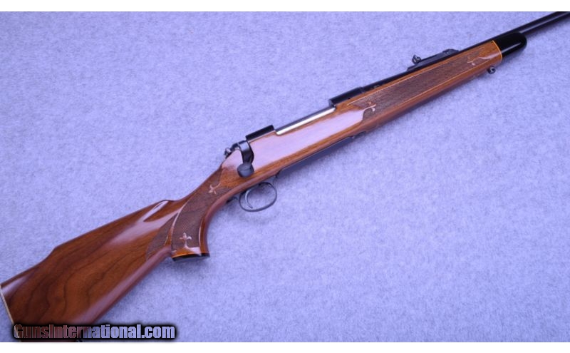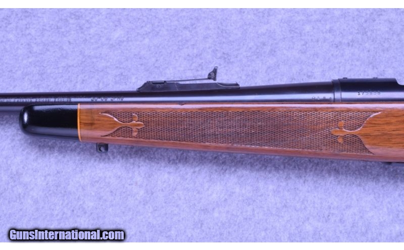 Description: Wood shows a few light storage marks. Blue and bore remain excellent. Rear sight elevator is missing. No box. SOLD Manufacturer: S/N 175XXX Caliber Info: .30-06 Metal Condition: Excellent Wood Condition: Very Good Bore Condition: Excellent Barrels: 22 Triggers: Factory Stock: Checkered Walnut Pistol Grip with Black Cap Stock Dimensions: 13 1/4" LOP Fore End: Checkered Walnut with Black Cap Butt Pad: Checkered Aluminum Weight: 7 LB Sights: Hooded Bead Front - Adjustable Notch Rear Item Location: Lehi, UT |