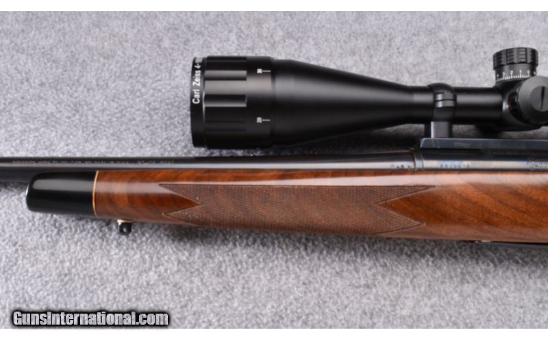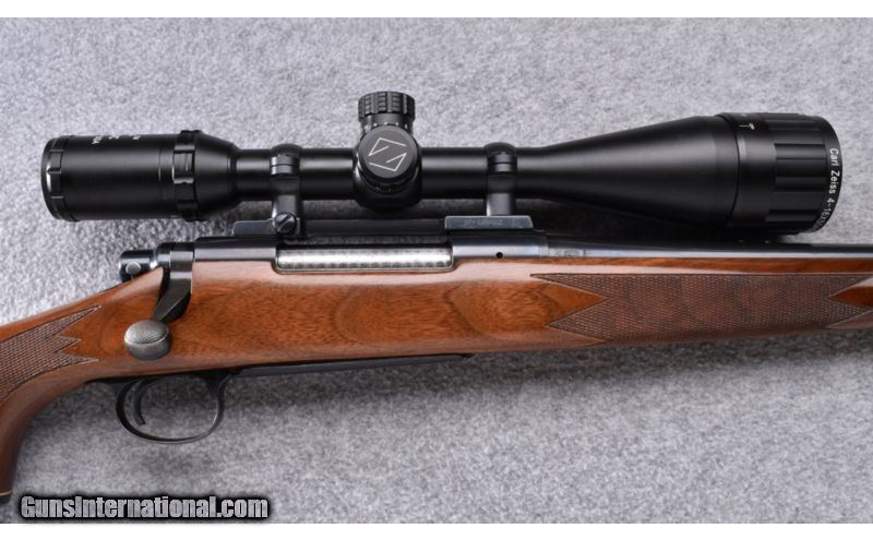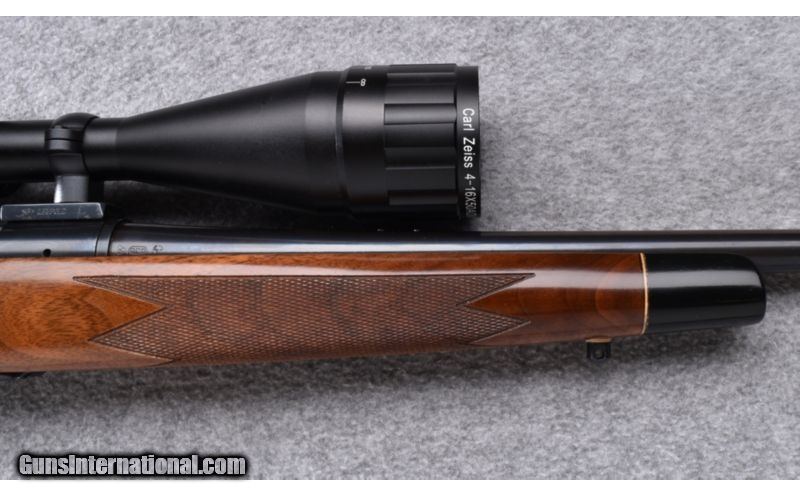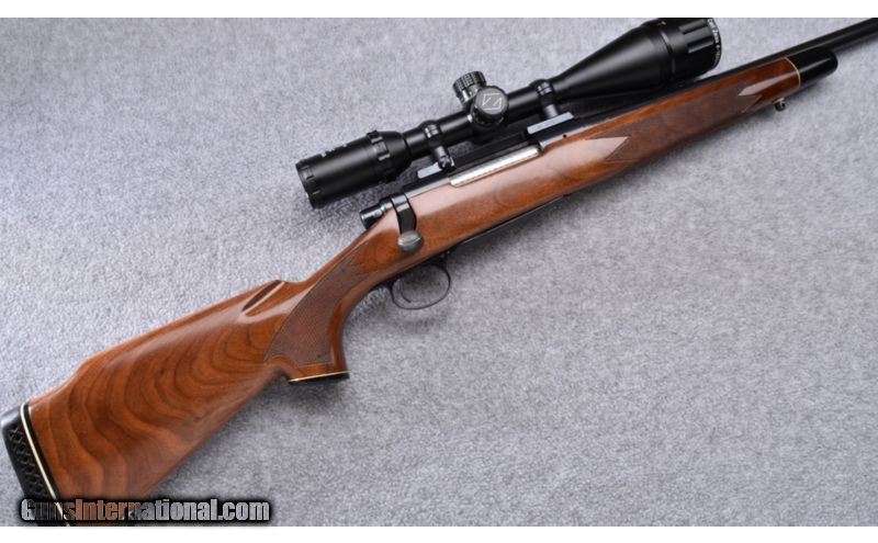 Description: Buttsock has been professionally shortened and a Pachmayr recoil pad fitted. Remains excellent throughout with Zeiss Conquest 4x-16x-50 MM optic. No box. SOLD Manufacturer: S/N 689XXXX Caliber Info: .30-06 Metal Condition: Excellent Wood Condition: Excellent Bore Condition: Excellent Barrels: 22 Triggers: Factory Stock: Checkered Walnut Pistol Grip with Black Cap Stock Dimensions: 13" LOP Fore End: Checkered Walnut with Black Cap Butt Pad: Black Vented Rubber Weight: 9 LB Sights: Hooded Bead Front - Zeiss Conquest 4x-16x-50MM Optic Item Location: Wheeling, WV |