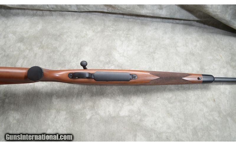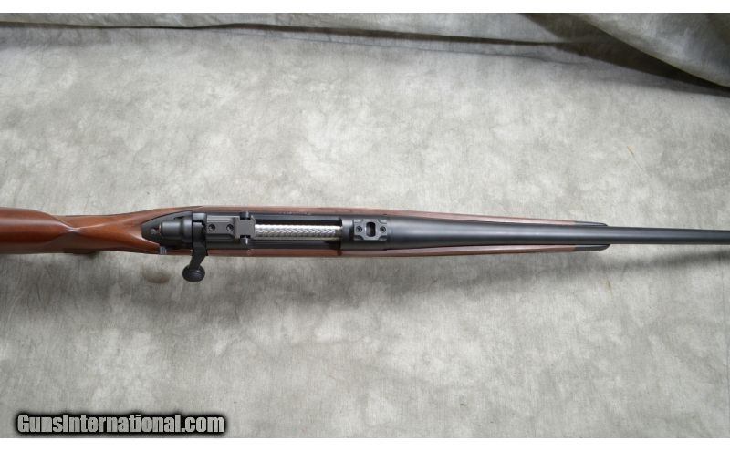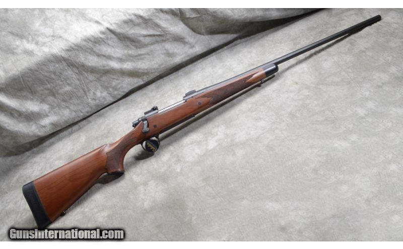 Description: Features include nicely grained walnut stock, black tip and grip caps, jeweled bolt, and hinged floor plate. Stock has pistol grip and cheek piece. Drilled and tapped for scope it includes bases. SOLD Caliber Info: .300 Winchester Magnum. Chambers: Internal magazine with hinged floorplate. Metal Condition: Excellent - could pass for new. Certainly wasn't fired much if at all. Wood Condition: Excellent. Bore Condition: Shiny and bright. Barrels: 26 Inch - blue. Triggers: Factory trigger. Stock: Checkered walnut with black grip cap. Stock Dimensions: 13 - 5/8 Inch LOP. Fore End: Checkered walnut with tip cap. Butt Pad: Thick and soft rubber pad. Weight: 7 lb. - 11 oz. Sights: Drilled and tapped for your choice of scope. Item Location: Rogers,, MN |