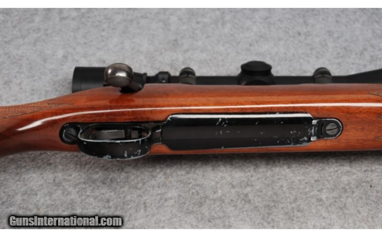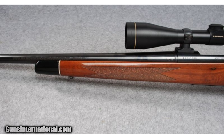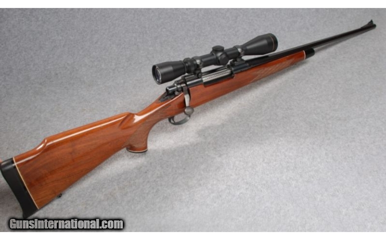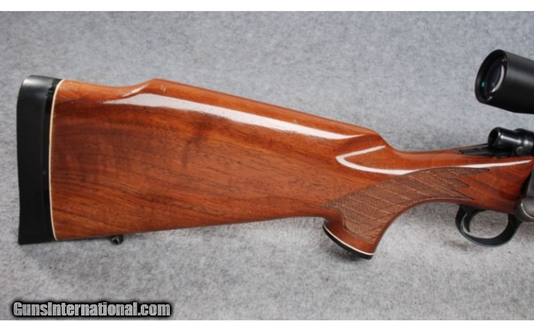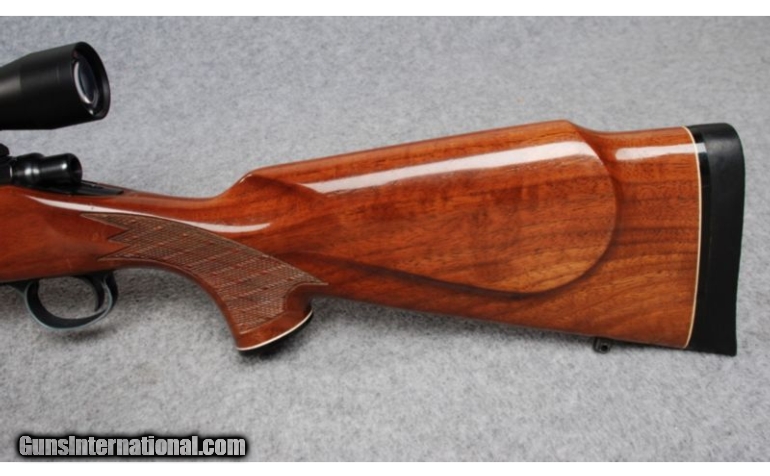 Description: SOLD Caliber Info: .338 Win. Mag. Metal Condition: Very minor handling marks. Wood Condition: Several contact and handling marks. Bore Condition: Bright and clean with sharp lands. Barrels: 24". Stock: Gloss Walnut with checkered pistol grip and raised cheekpiece. Stock Dimensions: 13 3/8" LOP. Fore End: Checkered Walnut with ebony tip and white spacer. Butt Pad: Rubber. Weight: 8 Lbs. 13 Oz. Sights: Leupold VX-1 3-9X40 Scope. Extras: Scope, bases, and rings. Sling. Item Location: Billings, MT |