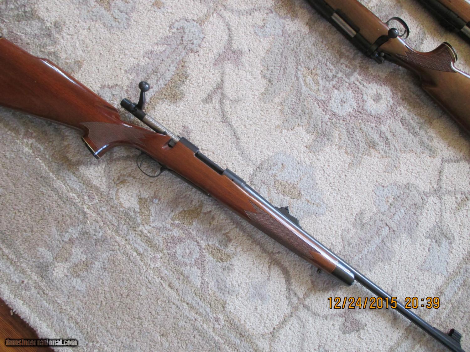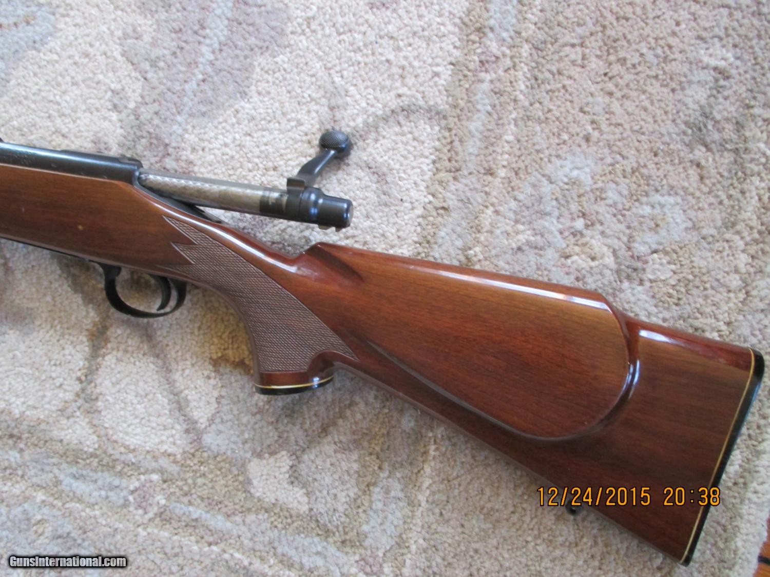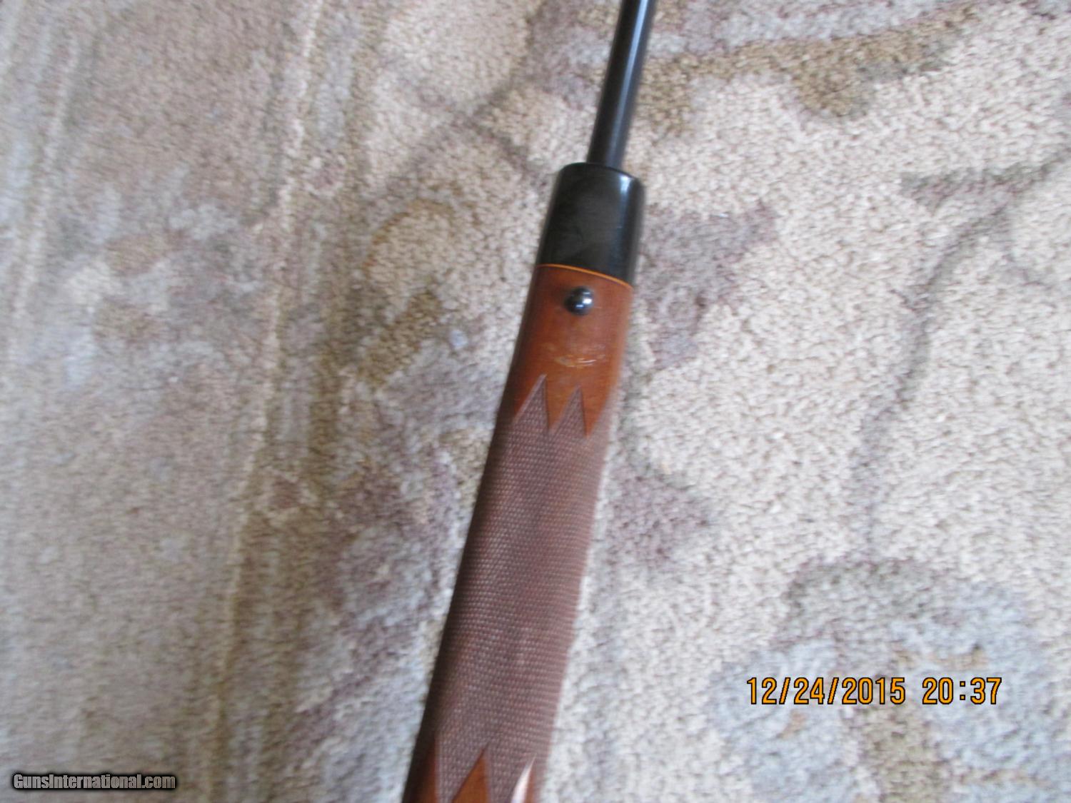 Description: REMINGTON MODEL 700 BDL ..6MM REMINGTON...22 INCH BARREL...."A" PREFIX ON SERIAL NUMBER..BARREL DATE CODE "XZ"..BLUING ALL THERE...WOOD HAD MARRING AT FRONT SLING SWIVEL ...SOME SMALL DENTS ON UNDERSIDE OF STOCK...NO CRACKS OR SPLITS IN WOOD..JEWLING WEAR IS MODERATE..OVERALL CONDITION VERY GOOD...SHIPPING $35.00 SOLD Manufacturer: REMINGTON Model: 700 BDL RIFLE Caliber Info: 6MM REMINGTON Condition: VERY GOOD/EXCELLENT Metal Condition: EXCELLENT Wood Condition: VERY GOOD |