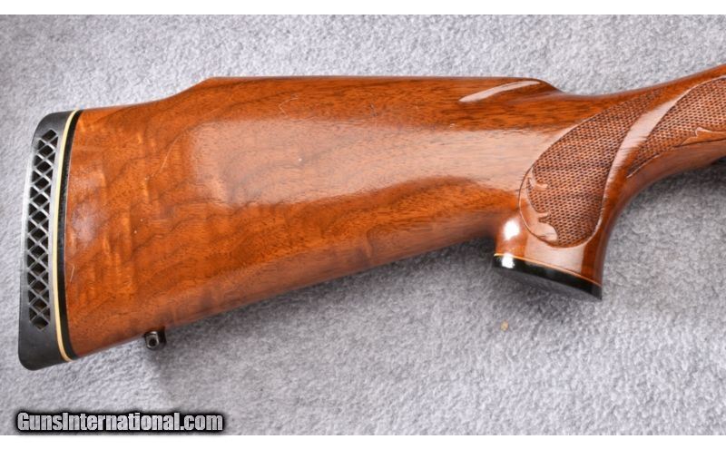 Description: Receiver shows a bit of blue loss on the left side with a couple scuffs on the barrel. Bore remains excellent. Wood shows a few use marks. No box. SOLD Manufacturer: S/N 635XXXX Caliber Info: 7 MM Rem. Mag. Metal Condition: Very Good Wood Condition: Very Good Bore Condition: Excellent Barrels: 24" Stainless Triggers: Factory Stock: Checkered Walnut Pistol Grip with Black Cap Stock Dimensions: 13 1/4" LOP Fore End: Checkered Walnut with Black Cap Butt Pad: Black Vented Rubber Weight: 7 1/2 LB Sights: Hooded Bead Front - Adjustable Notch Rear Item Location: Berlin, MA |