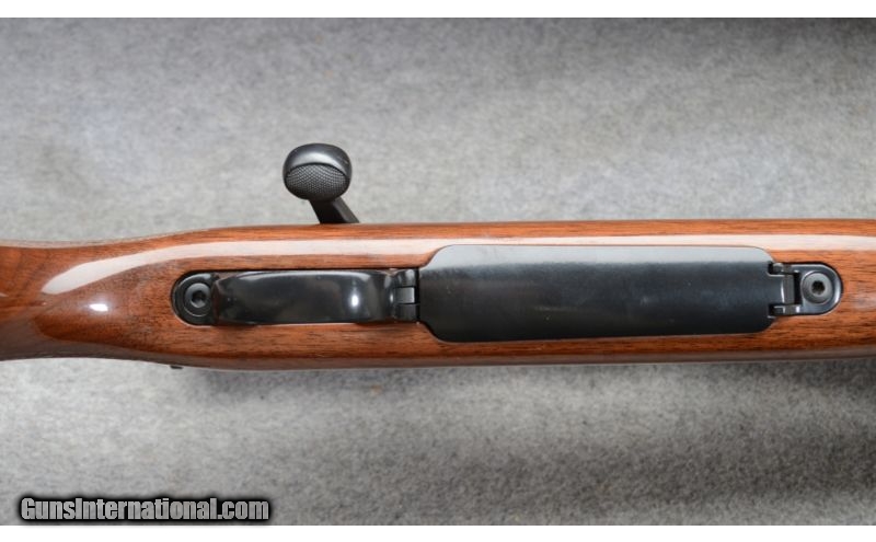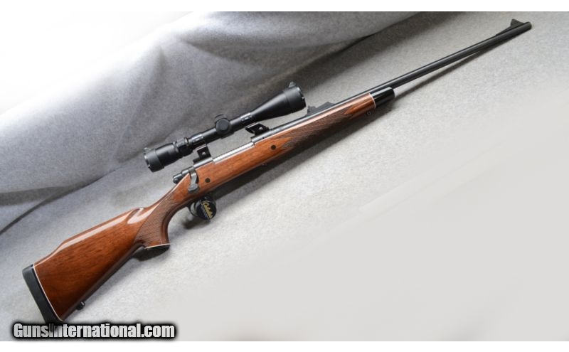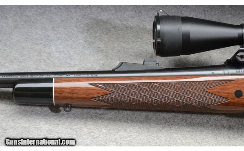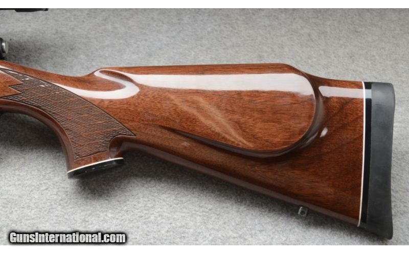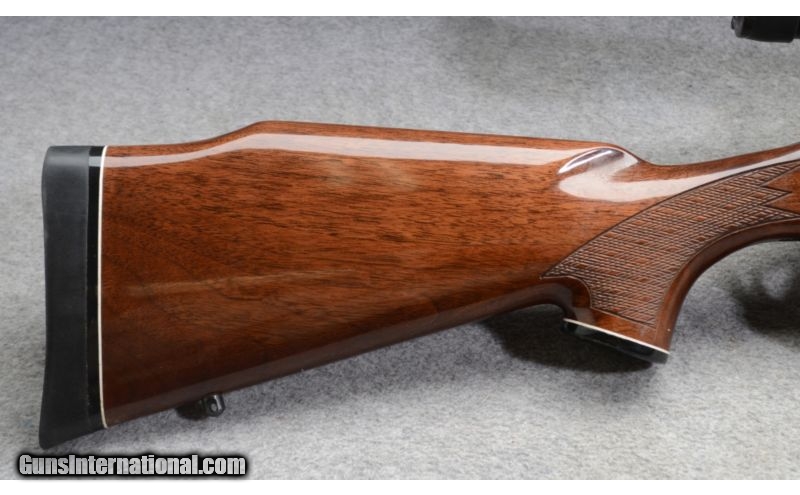 Description: SOLD Caliber Info: 7 mm Remington Magnum Metal Condition: Very good to excellent. There are three small scuffs in the bluing near the muzzle. Wood Condition: Very good. A couple of shallow scratches in the finish. Grip cap has a couple of chips out of the finish, and tip cap has a couple of chips, finish only. Bore Condition: Bright and shiny. Barrels: 24 Inch - blued Stock: Monte Carlo pattern checkered walnut with cheek piece rosewood grip cap with white line spaceer. Stock Dimensions: 13 3/8" LOP Fore End: Rosewood tip cap with white line spacer Butt Pad: Soft rubber pad. Weight: 8 lbs - 14 oz as shown with scope Sights: Bead and ramp notch open sights. Nikon 3-9x Scope Extras: Scope, scope mounts. Item Location: Rogers, MN, MN |