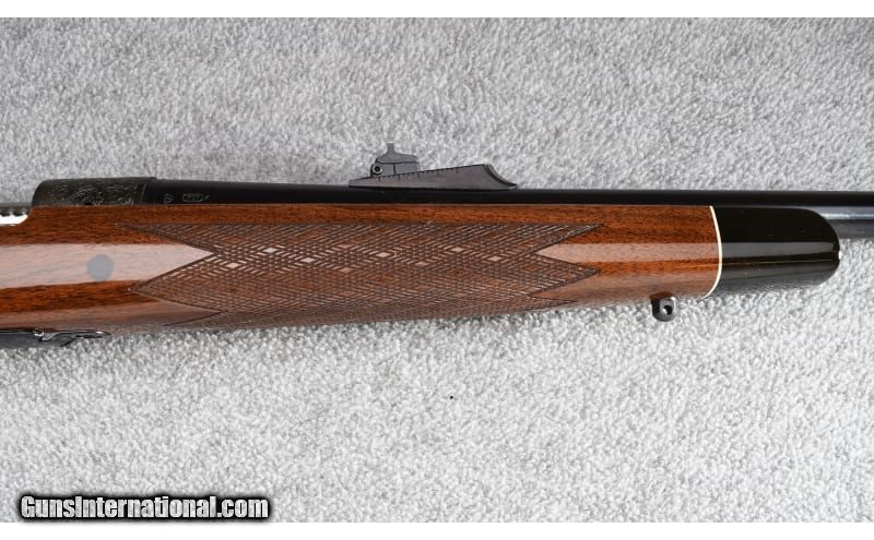 Description: This Remington Model BDL Custom Deluxe in .338 RUM was manufactured between 2000 and 2002. Gun has beautiful American Walnut with a high gloss finish and enhanced receiver and floor-plate. Gun appears unfired and is complete with original box, manual, and Remington J-Lock Trigger Safety Tool. Absolutely beautiful! .338 RUM SOLD Metal Condition: Excellent Wood Condition: Excellent Bore Condition: Excellent Barrels: 26" Tapered Triggers: Factory Stock Dimensions: 13 1/2" LOP Fore End: Double Skip Line Checkered American Walnut with Black Pistol Grip Cap & Monte Carlo Cheekpiece - Double Skip Line Checkered American Walnut Forend with Black Forend Cap Butt Pad: Remington Checkered Black Rubber Recoil Pad Weight: 8lb Sights: Hooded Post & Bead Front - Adjustable Ramp Rear - Factory Drilled & Tapped Item Location: Wheeling |