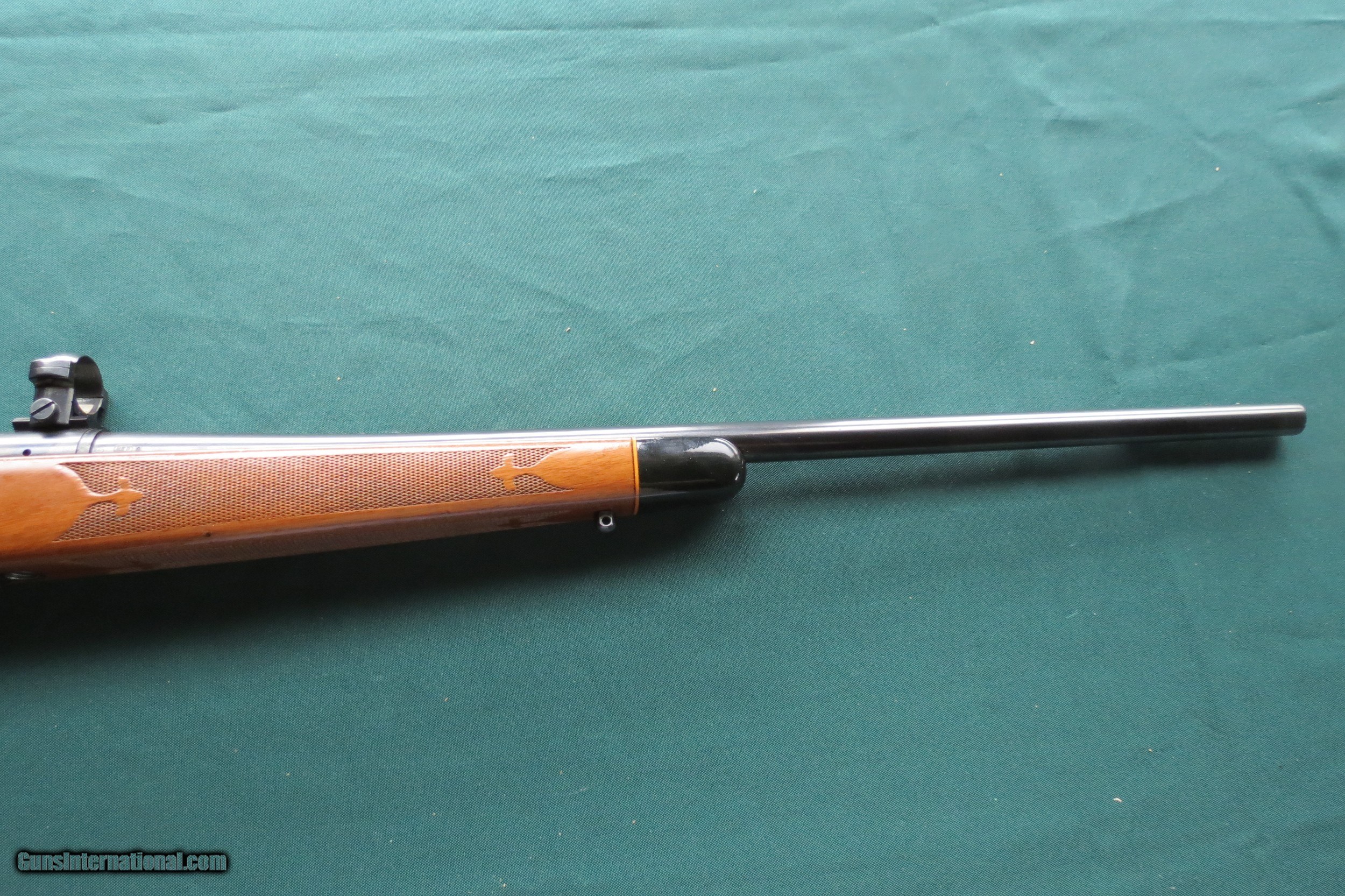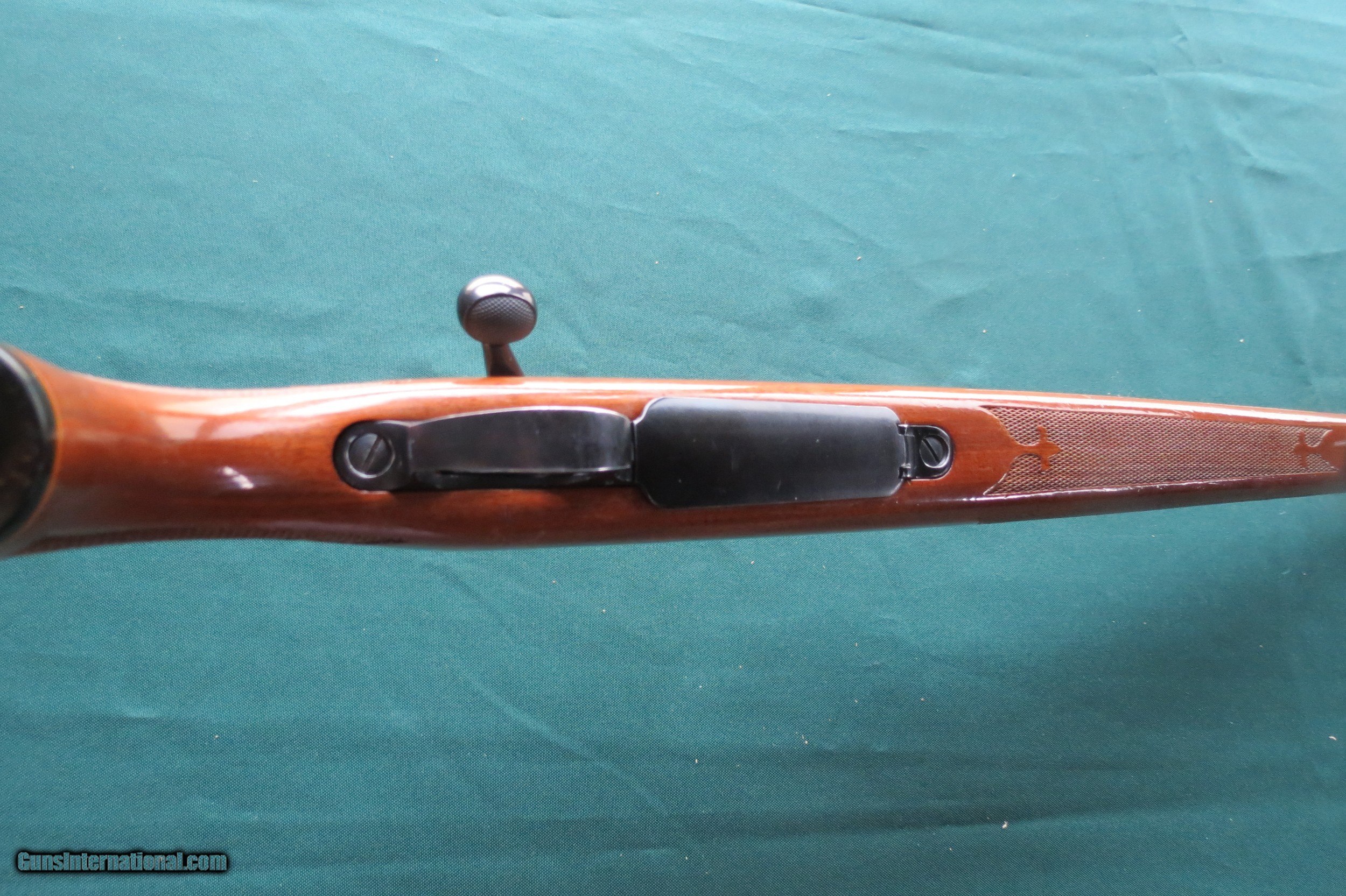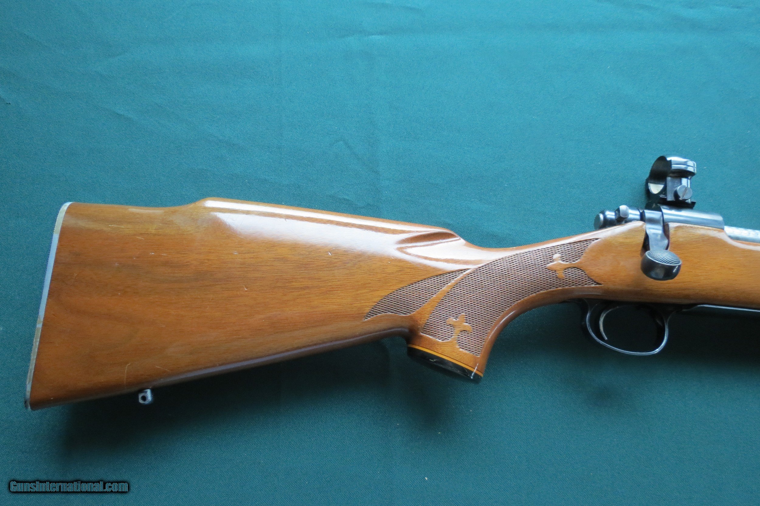 Description: Remington Model 700 BDL Custom Deluxe in 7mm-08. Early production rifle that has been rebarreled with a Remington 7mm-08 caliber barrel. Metal buttplate, 22" barrel, Amerian walnut stock with high gloss finish, distinctive black forend cap, white line spacers, Monte Carlo comb profile w/checkering. Hinged floorplate. 1" Rings and bases included. Rifle shows very well. Shipping/Insurance $40 SOLD Rifle Caliber: 7mm-08 Remington Manufacturer: Remington Model: 700 BDL Custom Deluxe Barrel Length: 22 Condition: Very Good |