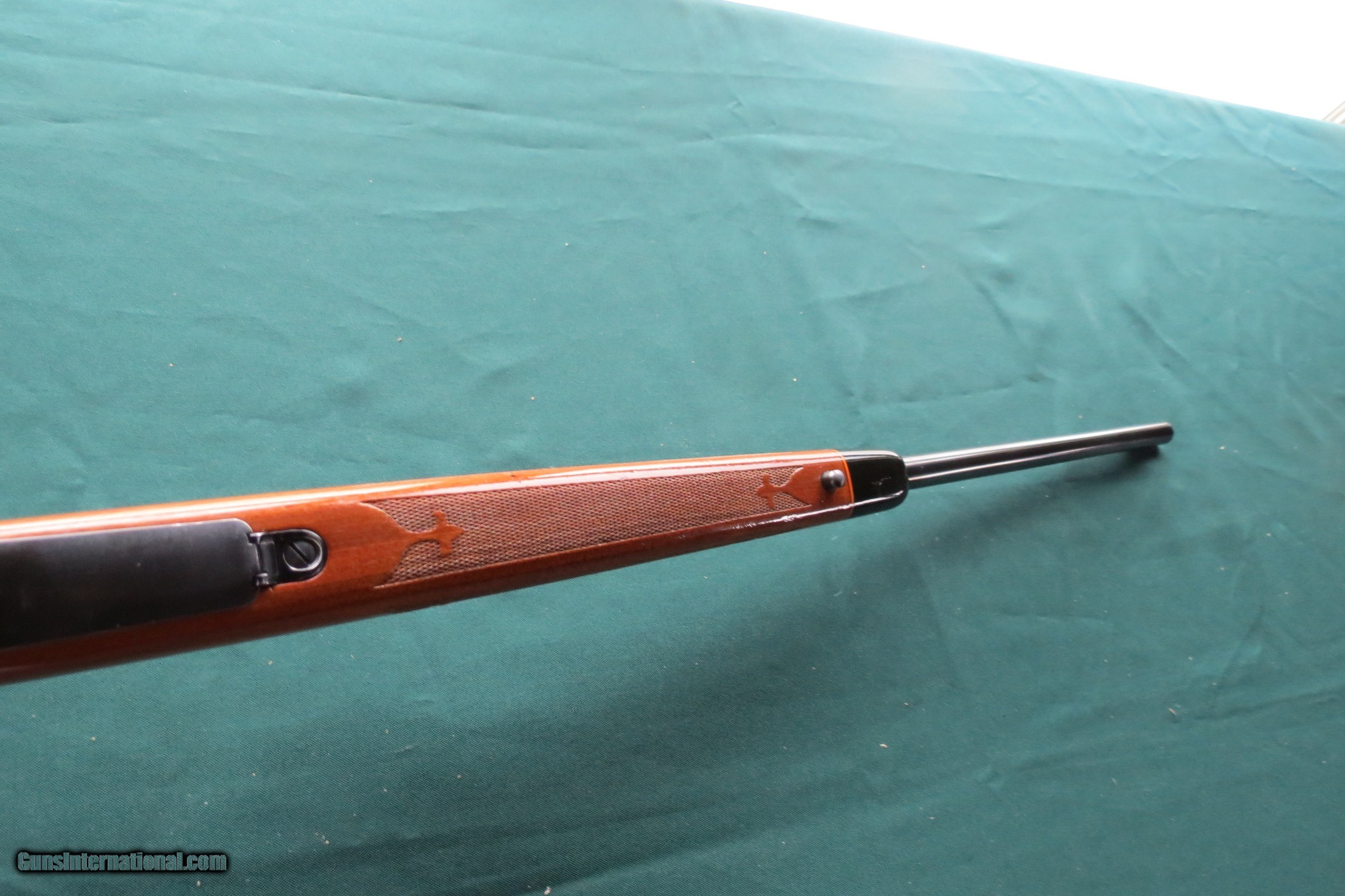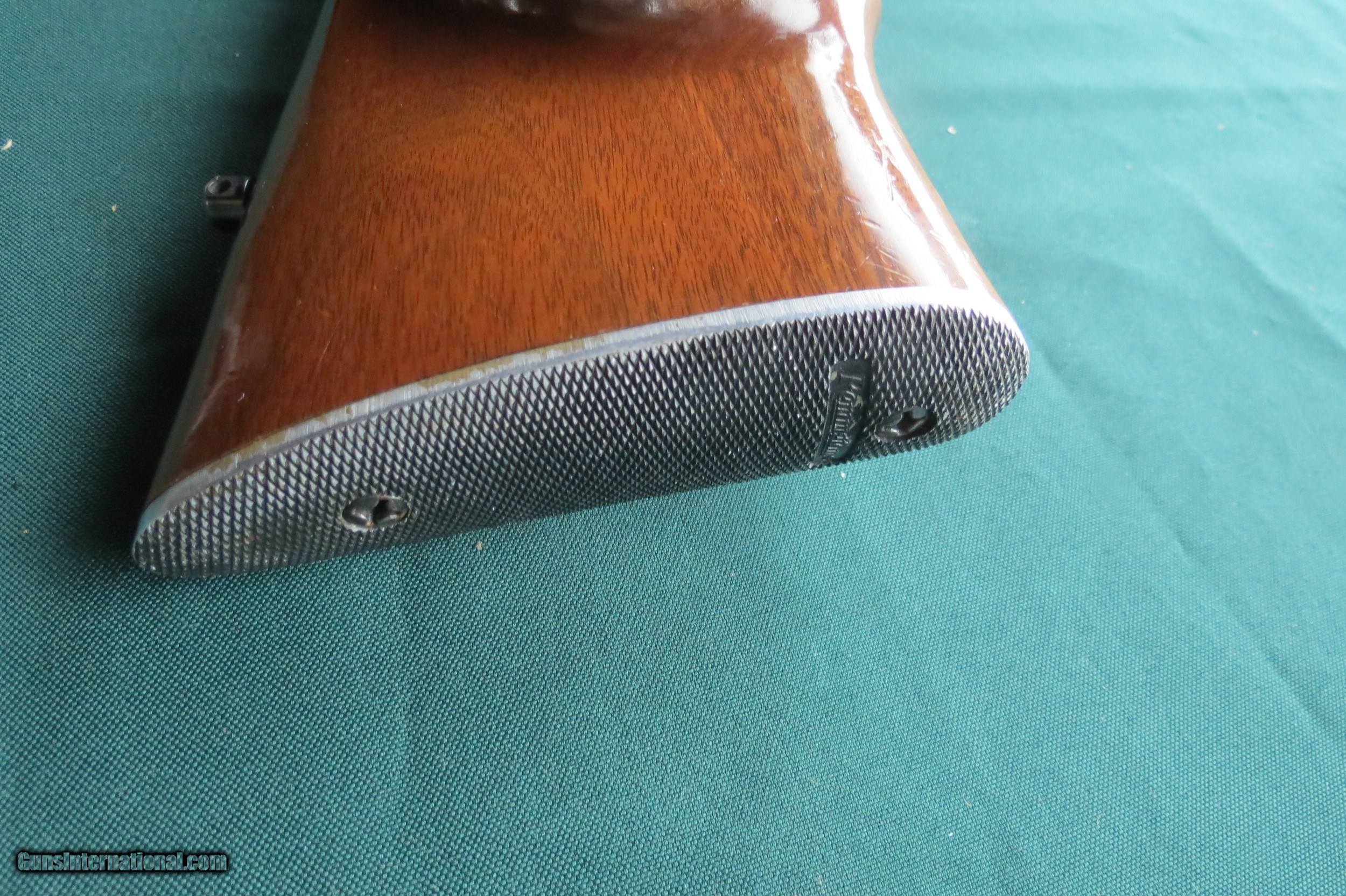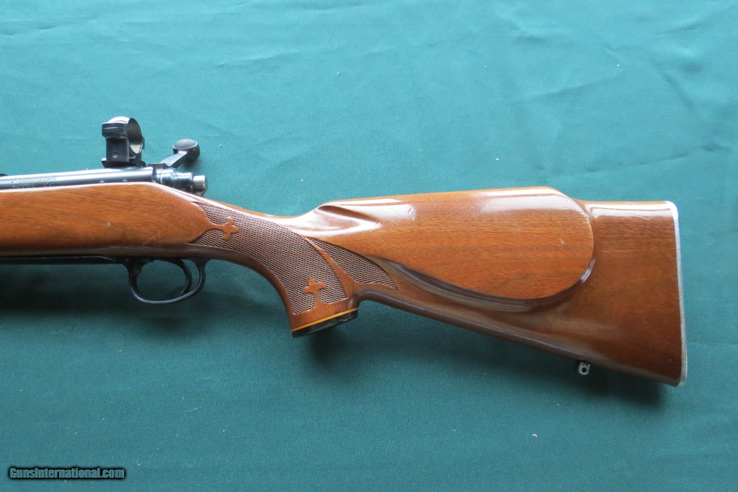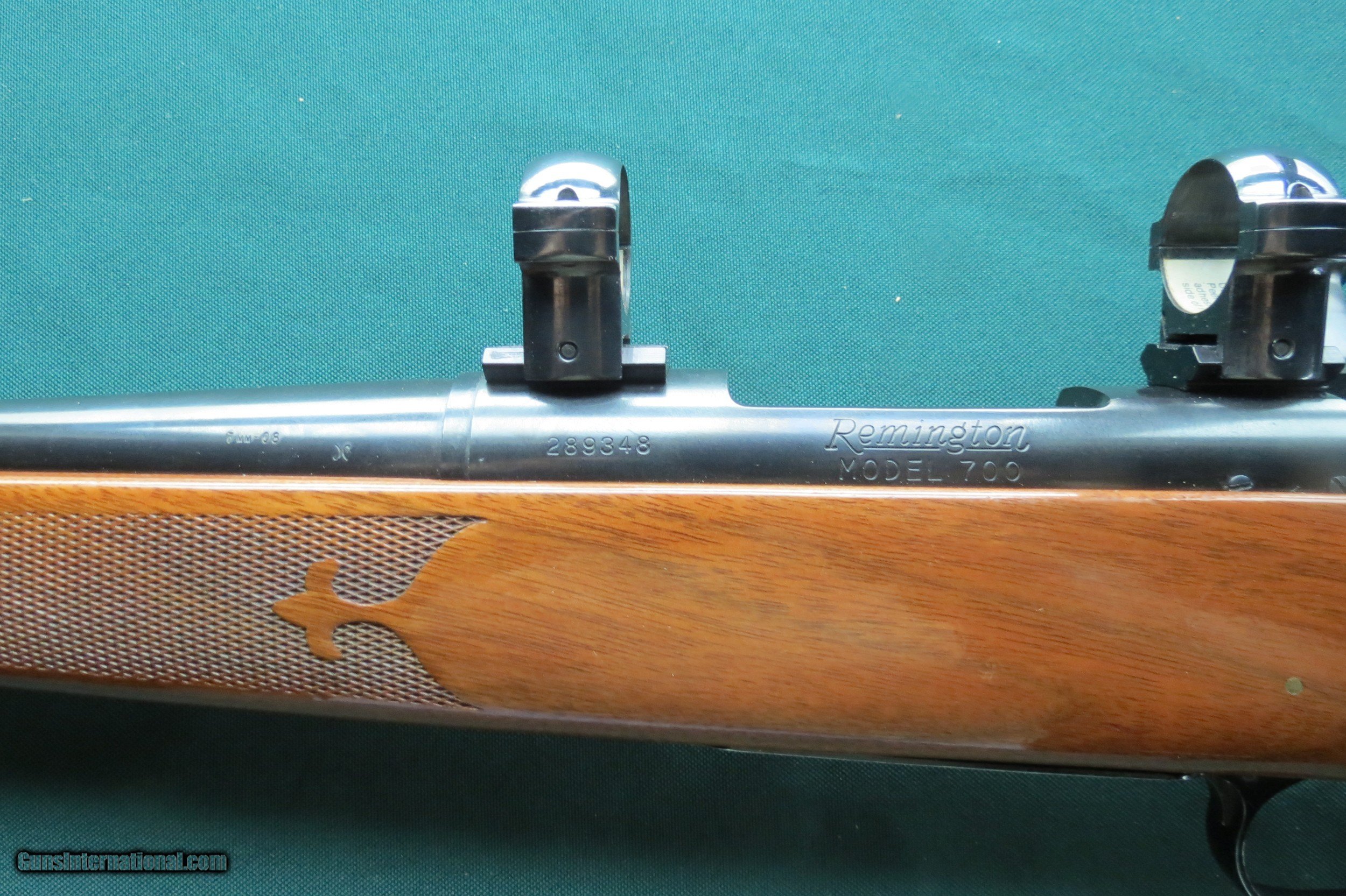 Description: Remington Model 700 BDL Custom Deluxe in 7mm-08. Early production rifle that has been rebarreled with a Remington 7mm-08 caliber barrel. Metal buttplate, 22" barrel, Amerian walnut stock with high gloss finish, distinctive black forend cap, white line spacers, Monte Carlo comb profile w/checkering. Hinged floorplate. 1" Rings and bases included. Rifle shows very well. Shipping/Insurance $40 SOLD Rifle Caliber: 7mm-08 Remington Manufacturer: Remington Model: 700 BDL Custom Deluxe Barrel Length: 22 Condition: Very Good |