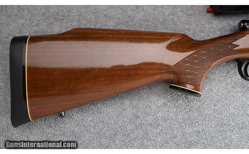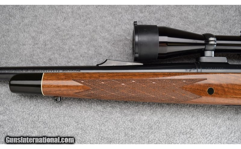 Description: This Remington Model 700 Detachable Magazine was manufactured in January 1995 and remains in excellent overall condition showing little use. Wood remains solid with only a few light scuffs, no scratches. Blue and bore remain excellent. Front sight hood is missing while rear elevator ramp remains, however sight has been removed as well. Gun is complete with Leupold Vari-X IIc scope in Burris mounts. No box. Beautiful gun in hard hitting .300 Win. Mag.! .300 Winchester Magnum SOLD Metal Condition: Excellent Wood Condition: Excellent Bore Condition: Excellent Barrels: 24" Tapered Triggers: Factory Stock Dimensions: 13 3/8" LOP Fore End: Double Skip Line Checkered Walnut with Black Pistol Grip Cap & Monte Carlo Cheek-Piece - Double Skip Line Checkered Forend with Black Forend Cap Butt Pad: Remington Checkered Black Rubber Butt Pad Weight: 9lb Sights: Post & Bead Front - Adjustable Ramp Rear - Leupold Vari-X IIc 3-9 Scope with Duplex Reticle in Burris Mounts Item Location: Wheeling |