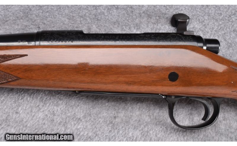 Description: Excellent throughout showing little use. Front sight has been removed. SOLD Manufacturer: S/N E643XXXX Caliber Info: .22-250 Rem. Metal Condition: Excellent Wood Condition: Excellent Bore Condition: Excellent Barrels: 24 Triggers: Factory Stock: Checkered Walnut Pistol Grip with Black Cap Stock Dimensions: 13 1/2" LOP Fore End: Checkered Walnut with Black Cap Butt Pad: Black Plastic Weight: 7 1/2 LB Sights: Front Sight Removed - Adjustable Open Notch Rear Item Location: Wheeling, WV |