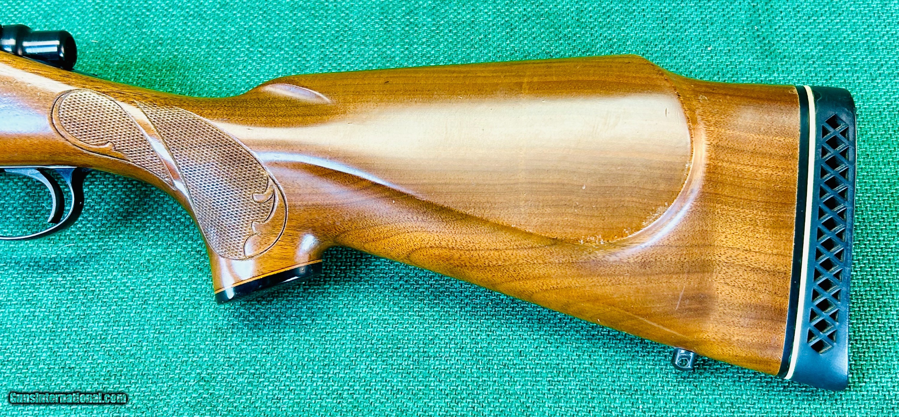 Description: The 24" barrel's date indicates that this Model 700 BDL chambered in .350 Remington Magnum was manufactured in 1969. This model 700 BDL is showing minor signs of use. There is evidence that a scope has been mounted on this gun, but will clean off fairly easily. We see little to no bluing wear, but wood is showing some gun cabinet wear marks around the cheek plate and grip cap. Bolt/receiver numbers match. Butt plate is as should be, not collapsed or mushed. Stock has no cracks, chips, or gouges. There is minor sling swivel impression 1" in front of rear sling stud. Factory front hood sight included. Please see pictures for details. This gun is on consignment and the price is FIRM. We accept USPS Money Order, cashier’s check, or credit card for immediate shipping. Please note credit card sales are subject to an additional 3% fee. US shipping only. Shipping costs are actual postage with adult signature required, to your FFL 01 or 03. We will pay the insurance for the amount sold. All items are for sale locally, so make contact as soon as you make your decision. Inquiries will be handled in chronological order. All postings will remain active until funds are received. We appreciate funds to arrive within 10 working days of verbal agreement. After such time we will entertain other inquiries in the order they were received. SOLD Curio/Relic: Yes Rifle Caliber: .350 Remington Magnum Manufacturer: Remington Model: 700 BDL |
