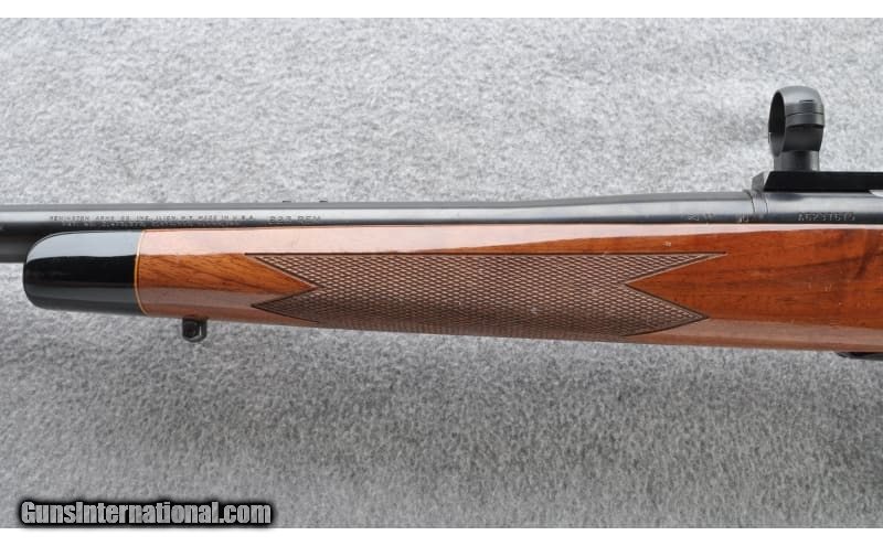 Description: The date code reveals a manufacture date of December 1975. This rifle falls outside the trigger recall as well. .223 Remington SOLD Chambers: .223 Remington in a five round box magazine bolt action rifle Metal Condition: "Very good, with some corrosion showing on the bolt handle Wood Condition: Very good with a few marks Bore Condition: Bright & crisp Barrels: 24" Heavy Contour Triggers: Single Stock Dimensions: 13 1/4" LOP Fore End: Checkered walnut with ebony tip and sling stud Butt Pad: Checkered hard rubber plate Weight: 9 Lbs. 8 Oz. Sights: "No sights, fitted with a Leupold one piece scope base and 1"" rings Item Location: Grand Junction, CO |