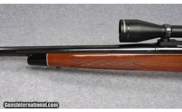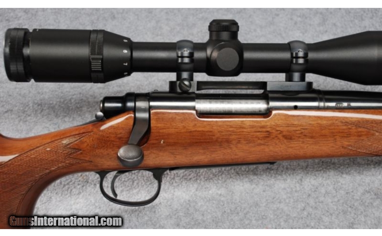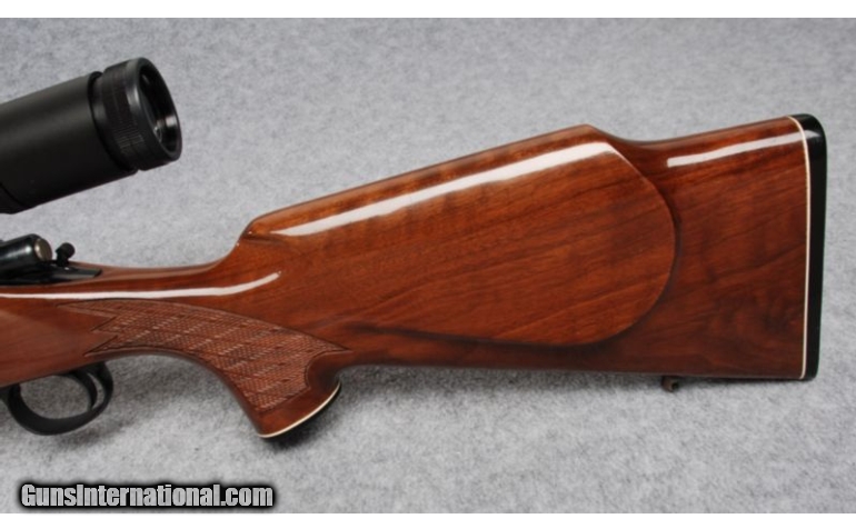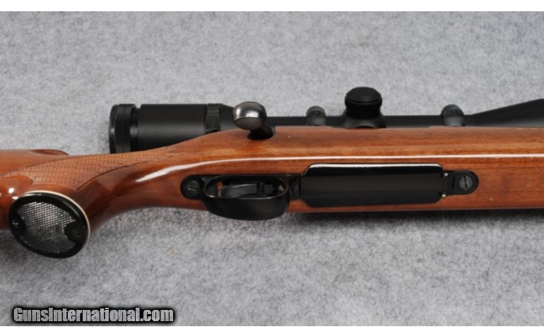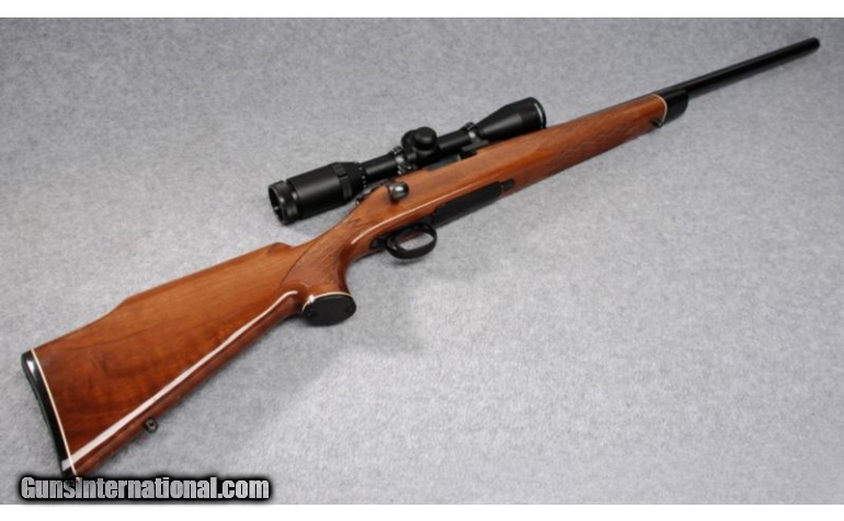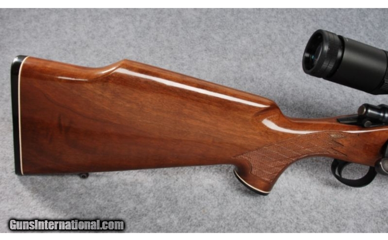Description: SOLD Caliber Info: .223 Rem. Metal Condition: Very minor handling marks. Wood Condition: Shows contact and handling marks. Bore Condition: Bright and clean with strong rifling. Barrels: 24" Heavy Barrel. Stock: Gloss Walnut with checkered pistol grip and raised cheekpiece. Stock Dimensions: 13 3/8" LOP Fore End: Gloss Walnut with wraparound checkering. Ebony tip with white spacer. Butt Pad: Original. Weight: 10 Lbs. 10 Oz. Sights: Pentax Gameseeker 4-12X40 Scope. Extras: Scope, bases, and rings. Item Location: Billings, MT |