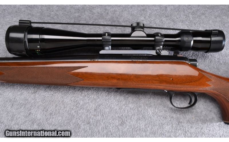 Description: Excellent throughout showing little use. Complete with a Bushnell 6x-18x optic. No box. SOLD Manufacturer: S/N 682XXXX Caliber Info: .243 Win. Metal Condition: Excellent Wood Condition: Excellent Bore Condition: Excellent Barrels: 24" Heavy Triggers: Factory Stock: Checkered Walnut Pistol Grip with Black Cap Stock Dimensions: 13 1/4" LOP Fore End: Checkered Walnut with Black Cap Butt Pad: Black Plastic Weight: 10 1/4 LB Sights: Bushnell 6x-18x A.O. Optic Item Location: Wheeling, WV |